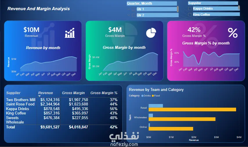 · تصميم لوحات تحكم (Dashboards) تفاعلية وجذابة في Power BI، قابلة للتحديث بنقرة زر واحدة.