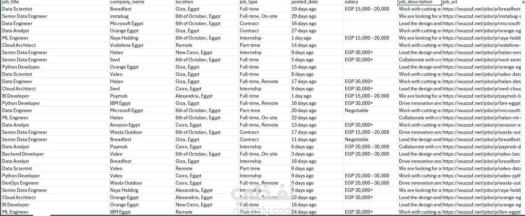 بناء نظام لاستخراج بيانات الوظائف من موقع Wuzzuf باستخدام Python