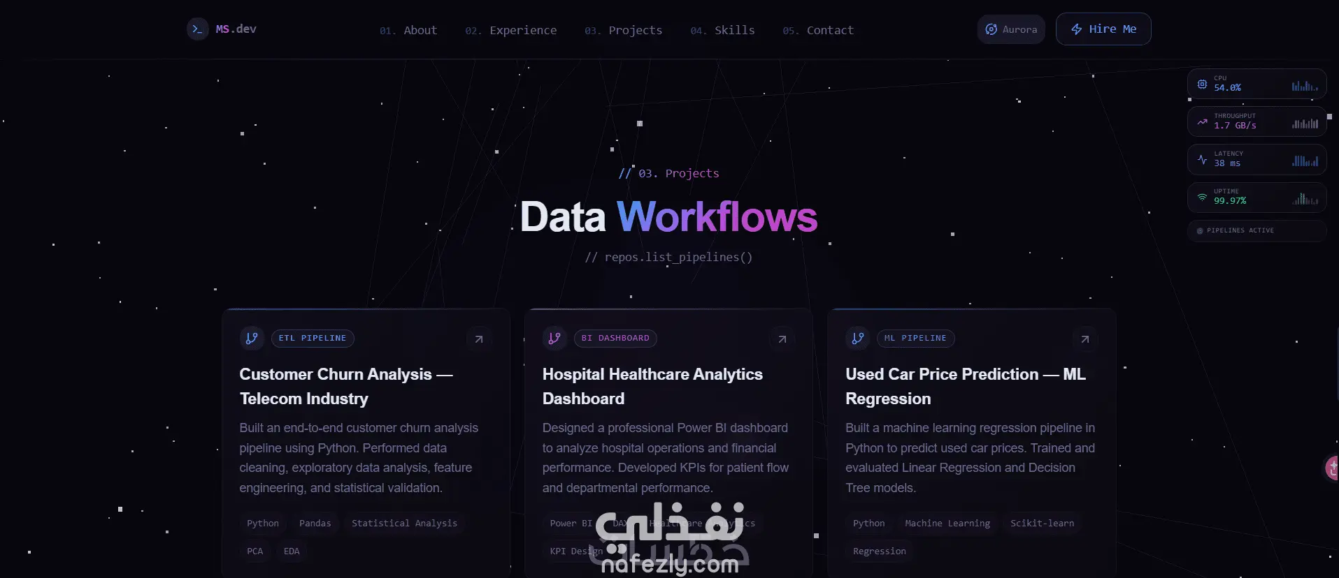 أقوم بإنشاء Portfolio شخصي احترافي يساعدك على عرض مهاراتك ومشاريعك بطريقة منظمة وعصرية تعطي انطباعًا قويًا أمام أصحاب العمل والعملاء.