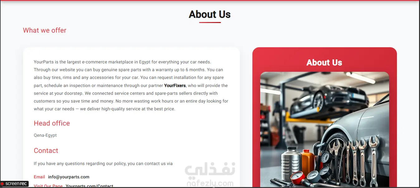 قمت بتطوير موقع ويب كامل لعرض وبيع قطع غيار السيارات، حيث يتيح للمستخدمين تصفح المنتجات حسب الفئات المختلفة، والاطلاع على تفاصيل كل قطعة غيار بشكل منظم وسهل الاستخدام.