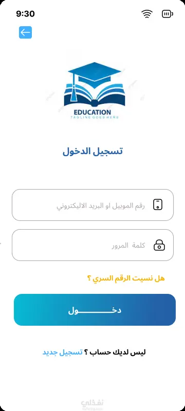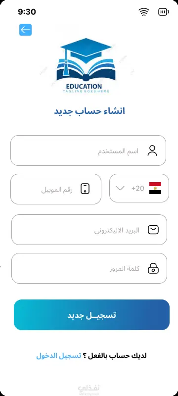نموذج صفحات التسجيل في تطبيق تعليمي