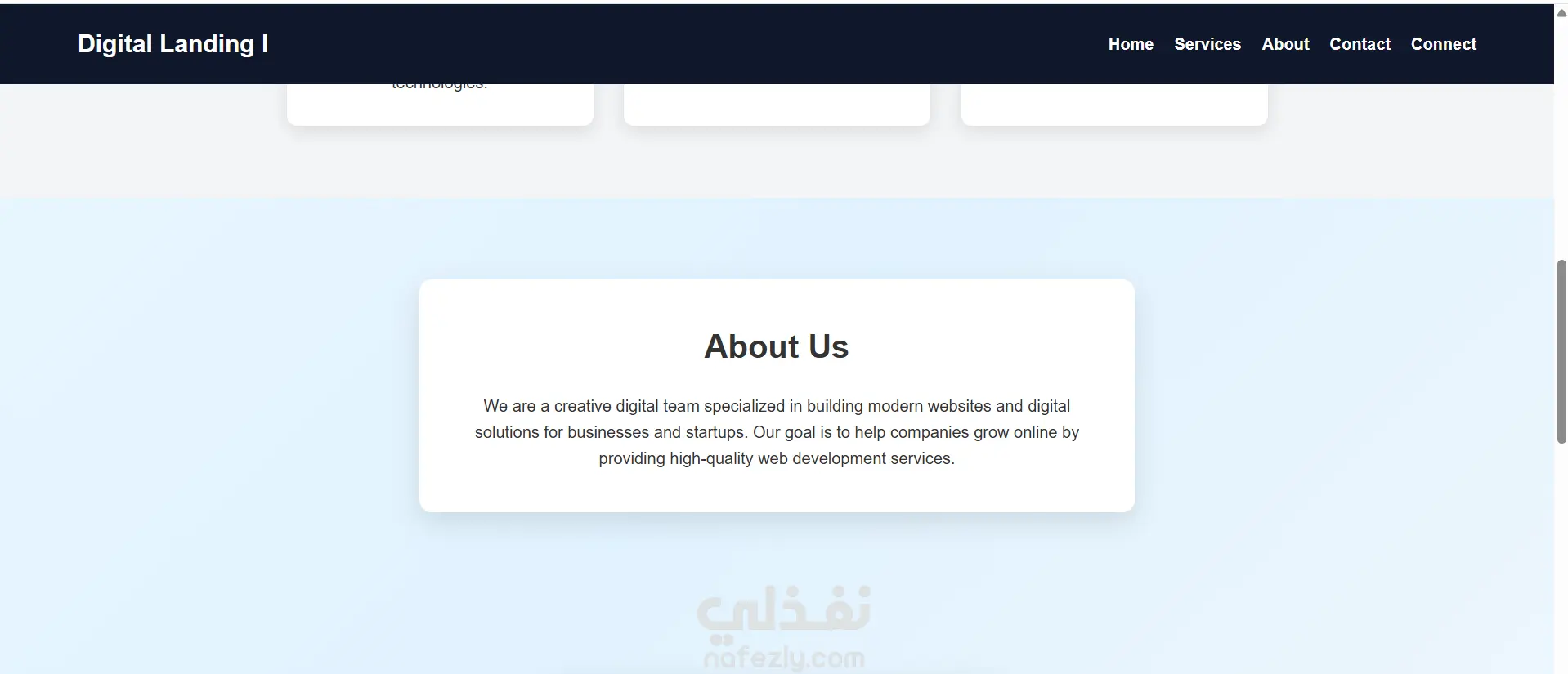 ركز التصميم على البساطة وسرعة التحميل مع تقديم تجربة مستخدم جيدة، حيث تم تنظيم المحتوى بشكل واضح ليسهل على الزائر فهم المعلومات والتفاعل مع الصفحة.