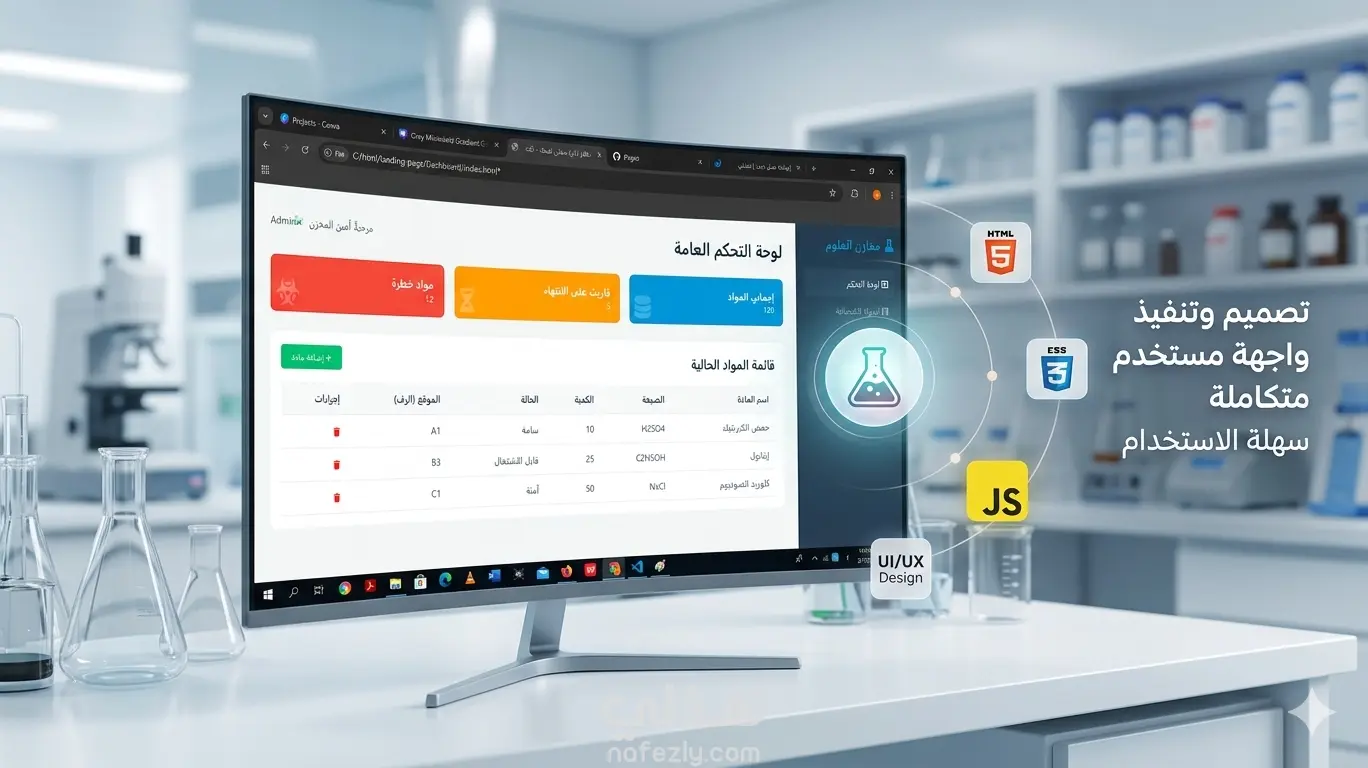 تصميم وتطوير واجهة مستخدم (Front-end) لنظام متكامل لإدارة مخازن المواد الكيميائية مخصص للمختبرات وكليات العلوم. يهدف المشروع إلى تحويل عملية الجرد الورقية التقليدية إلى نظام رقمي دقيق يسهل مراقبة المواد الخطرة وتواريخ الصلاحية
