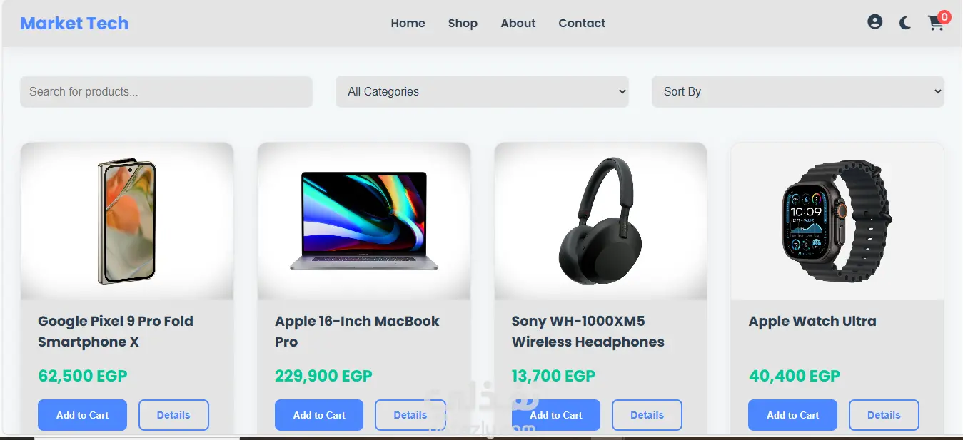 Markettech هو مشروع يهدف إلى إعادة تعريف تجربة التسوق الإلكتروني من خلال واجهة مستخدم متطورة تركز على "زيادة التحويلات" (Conversion Rate). تم بناء المنصة لتكون حلاً مثالياً للشركات التي تبحث عن التوسع الرقمي، حيث تجمع بين سرعة التصفح الفائقة والتنظيم الدقيق للمنتجات.