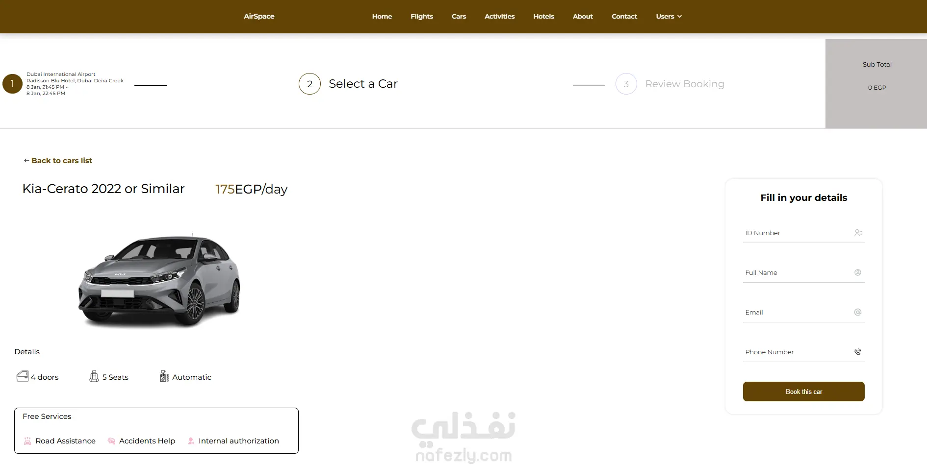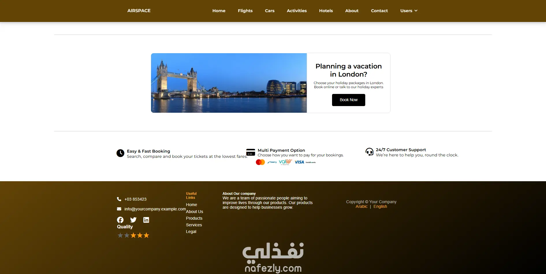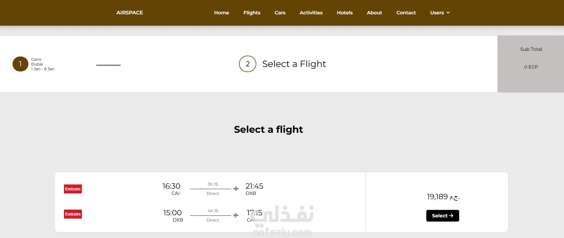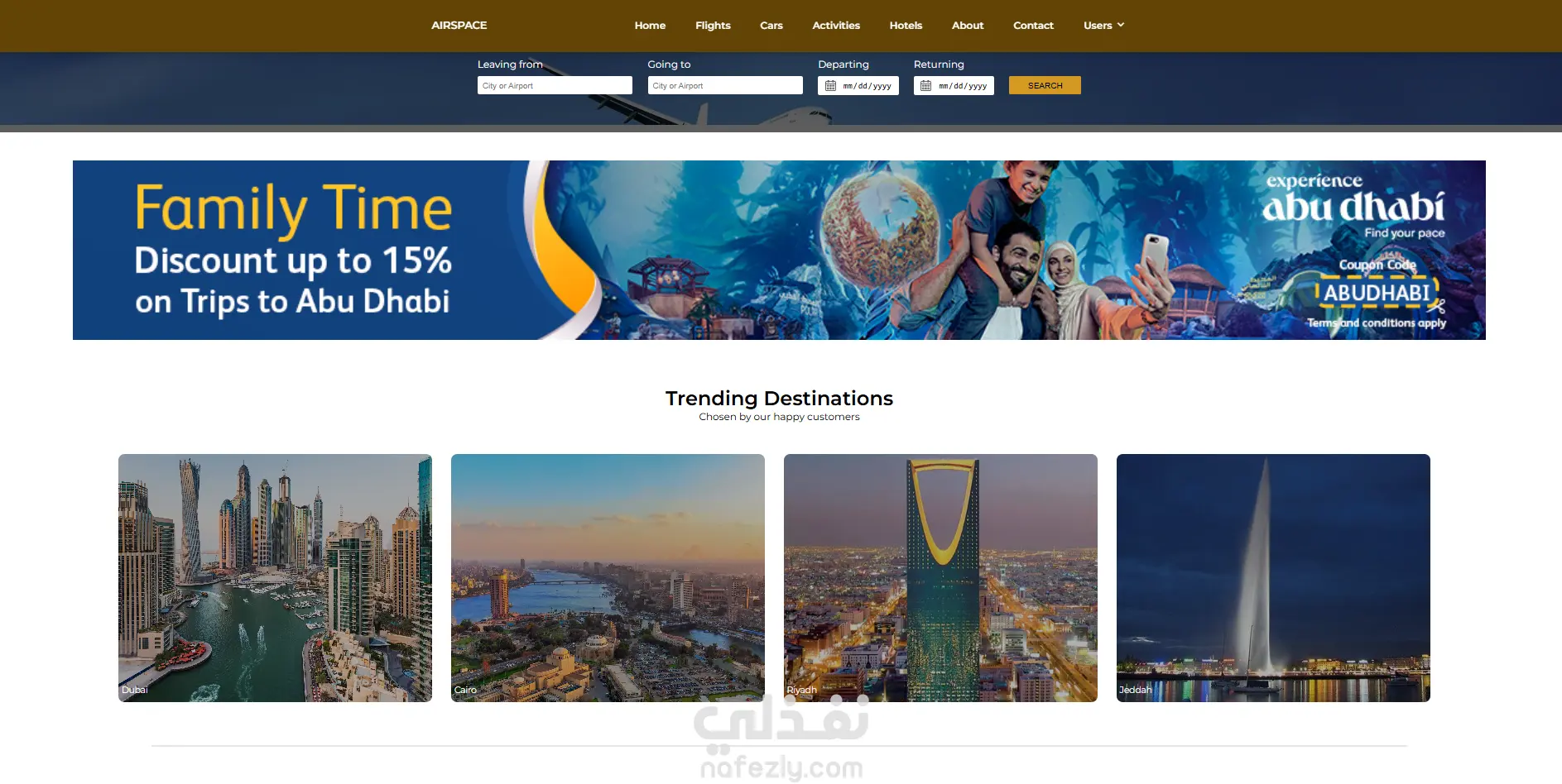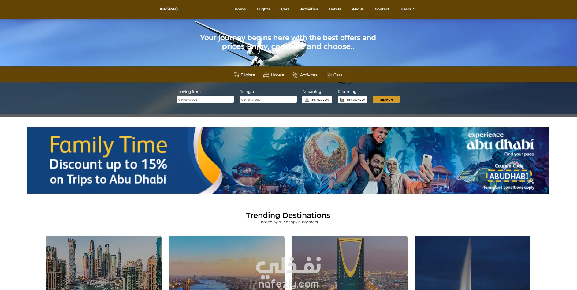 - صفحة مخصصة لحجز الرحلات الجوية.