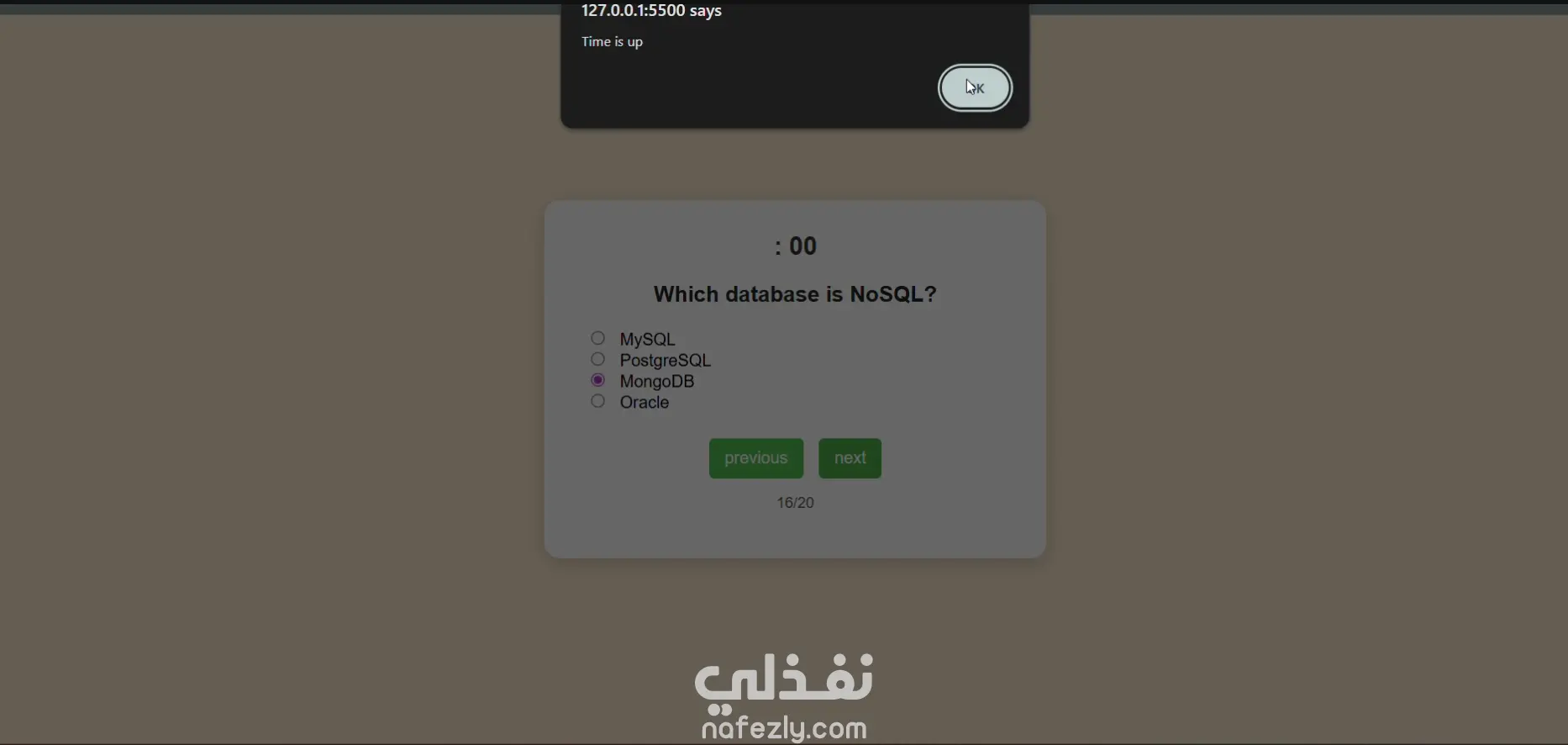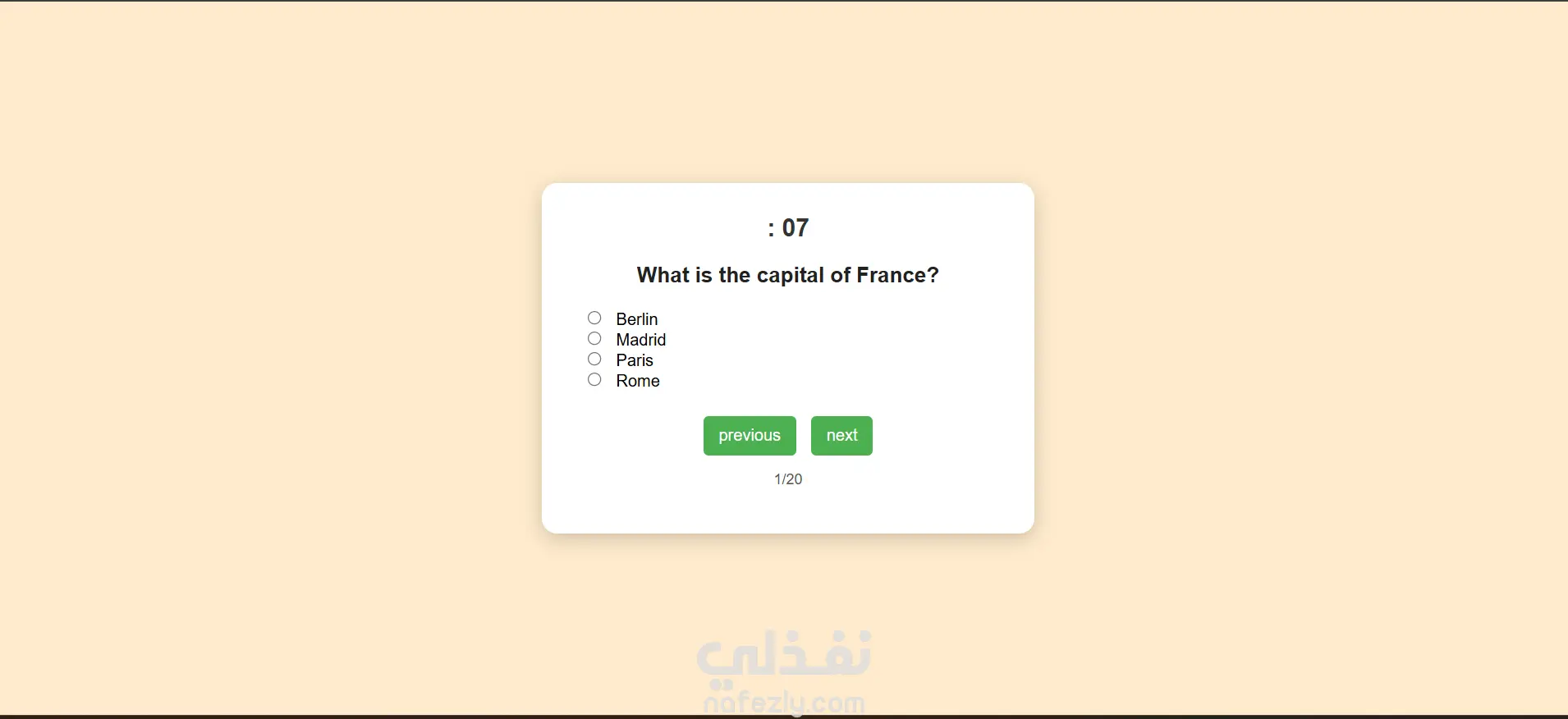 نظام امتحانات ويب صغير يعتمد على HTML وCSS وJavaScript يسمح للمستخدمين بإدخال أسمائهم، وأداء امتحانات متعددة الخيارات مع مؤقت زمني، والتنقل بين الأسئلة، وحساب الدرجة النهائية تلقائيًا كنسبة مئوية.