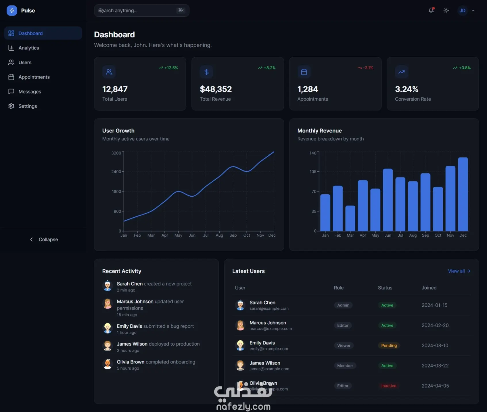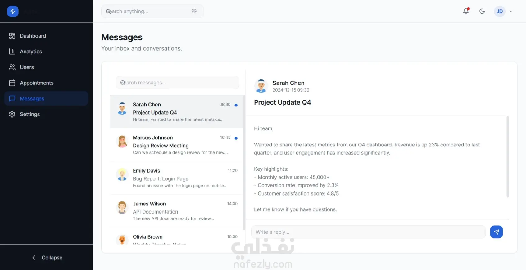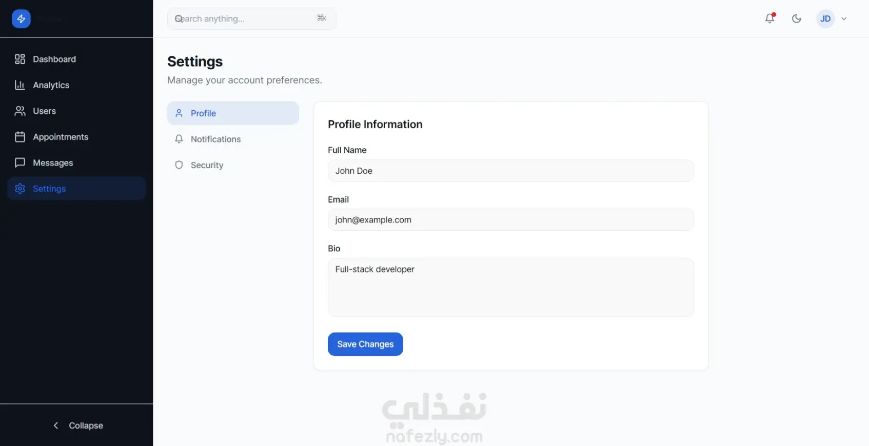 قمت بتصميم وتطوير لوحة تحكم (Dashboard) حديثة تهدف إلى تسهيل إدارة البيانات والمحتوى داخل الأنظمة أو المواقع الإلكترونية. تم بناء لوحة التحكم بواجهة واضحة ومنظمة تساعد المستخدم أو مدير النظام على متابعة المعلومات وإدارتها بسهولة من مكان واحد. تعرض لوحة التحكم مجموعة من الإحصائيات والمؤشرات المهمة بشكل بصري منظم، مما يساعد على فهم البيانات بسرعة واتخاذ قرارات أفضل. كما تحتوي على أقسام مختلفة لإدارة المحتوى مثل إضافة العناصر الجديدة، تعديل البيانات، أو حذفها بطريقة بسيطة وسريعة. تم التركيز في تصميم الداشبورد على تجربة المستخدم وسهولة الاستخدام، بحيث يتمكن أي مدير نظام من التحكم في البيانات دون الحاجة إلى خبرة تقنية كبيرة. كما أن التصميم متجاوب ويعمل بكفاءة على مختلف الأجهزة والشاشات. تم تطوير المشروع بطريقة منظمة وقابلة للتوسع بحيث يمكن ربطه بسهولة بأي نظام أو موقع إلكتروني لإدارة المستخدمين أو المنتجات أو المحتوى. مميزات لوحة التحكم تصميم حديث ومنظم لعرض البيانات عرض الإحصائيات والمعلومات بشكل واضح إمكانية إضافة وتعديل وحذف البيانات بسهولة واجهة استخدام بسيطة وسهلة الفهم تصميم متجاوب يعمل على مختلف الأجهزة بنية قابلة للتطوير والربط مع أنظمة أخرى