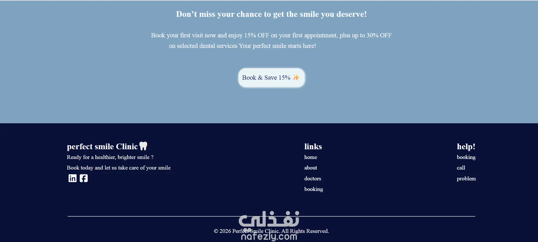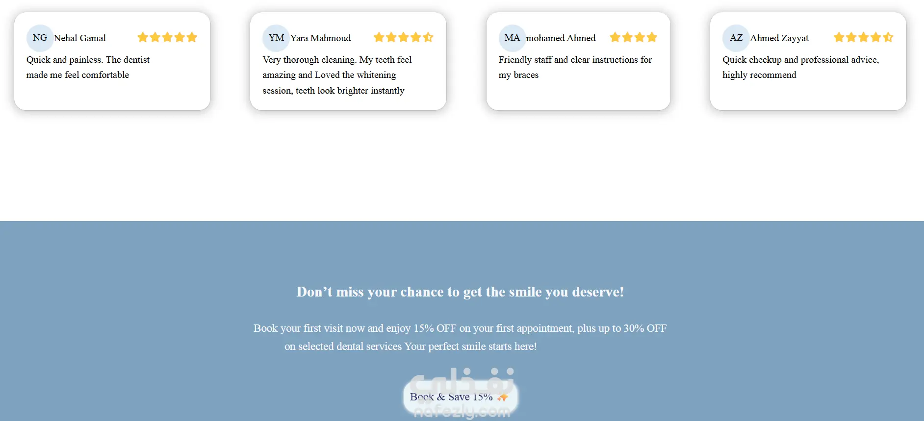 اقوم بانشاء موقع لعياده اسنان حديثه و متجاوبه باستخدام الريسبونسيف بحيث يعمل بشكل ممتاز على الموبايل و الكمبيوتر و التابلت