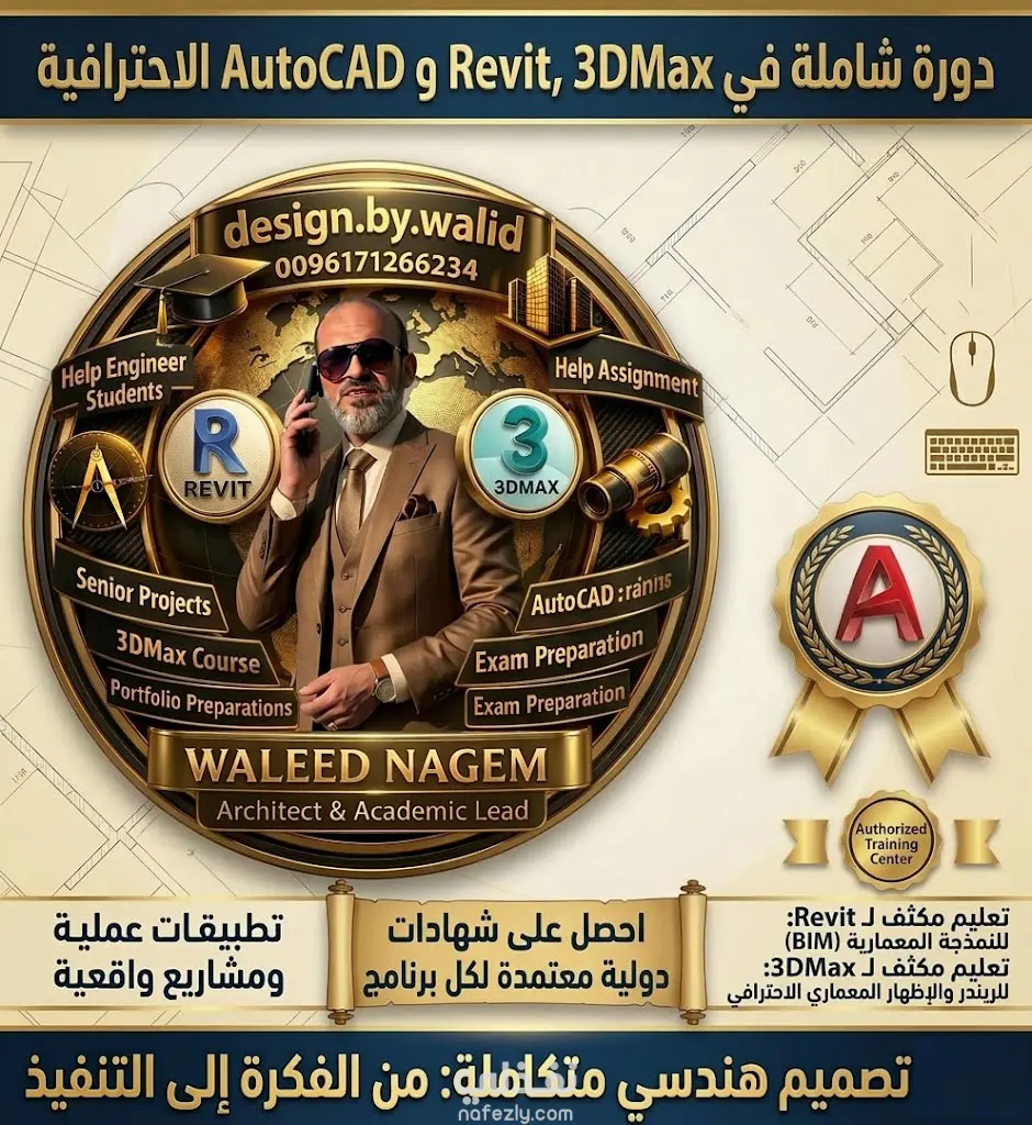 دورة التصميم الهندسي المتكاملة (AutoCAD, Revit, 3ds Max) وصف الخدمة: هل تبحث عن احتراف التصميم من الفكرة وحتى التنفيذ؟ أقدم لك دورة هندسية متكاملة تجمع بين أقوى ثلاثة برامج في السوق المعماري والإنشائي، مصممة خصيصاً لتنقلك من المستوى المبتدئ إلى الاحتراف الأكاديمي والعملي.محاور الدورة الرئيسية:برنامج AutoCAD:إتقان الرسم ثنائي الأبعاد ($2D$) بدقة عالية.إعداد المخططات التنفيذية والرسومات المعمارية والإنشائية.إدارة الطبقات (Layers) والمقاييس (Scaling) للطباعة الاحترافية.برنامج Revit (BIM):التعرف على تقنية نمذجة معلومات البناء ($BIM$).بناء النماذج ثلاثية الأبعاد ($3D$) وربط المخططات ببعضها تلقائياً.استخراج الجداول الكمية والمقاطع العرضية بضغطة زر.برنامج 3ds Max:الإخراج المعماري الاحترافي (Rendering).توزيع الإضاءة الواقعية وإضافة الخامات (Materials).تحويل المخططات الصماء إلى صور واقعية مبهرة للعملاء.ما الذي ستحصل عليه في هذه الدورة؟تطبيقات عملية: العمل على مشاريع واقعية (فلل، مباني سكنية) من البداية للنهاية.دعم مشاريع التخرج: مساعدة خاصة لطلاب الهندسة في مشاريعهم الكبرى (Senior Projects).التحضير للامتحانات: تدريب مكثف لاجتياز الاختبارات الأكاديمية والمهنية بنجاح.تجهيز البورتفوليو: سأساعدك في بناء ملف أعمال قوي يعرض مهاراتك بشكل جذاب لأصحاب العمل.