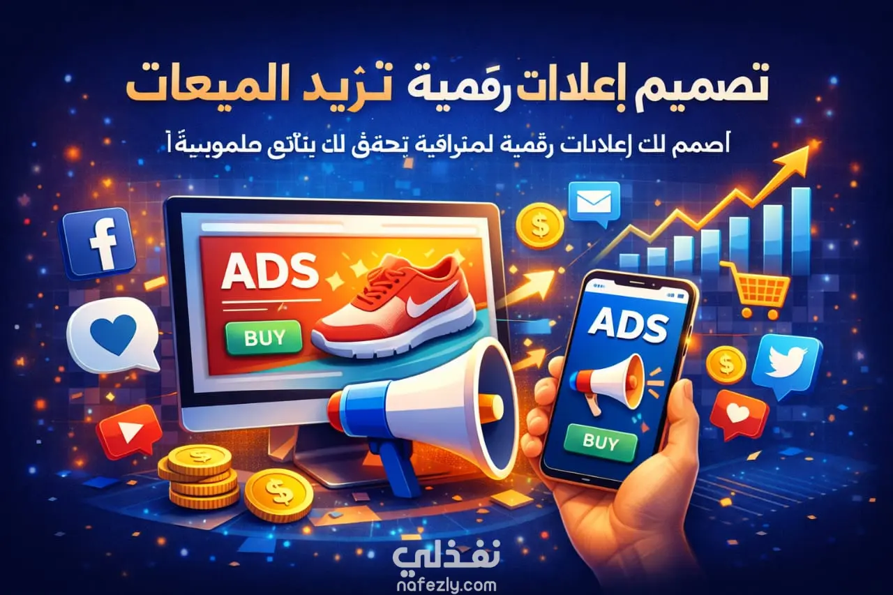 أقدم خدمة تصميم إعلانات رقمية احترافية تساعدك على زيادة مبيعاتك وتحقيق نتائج واضحة.