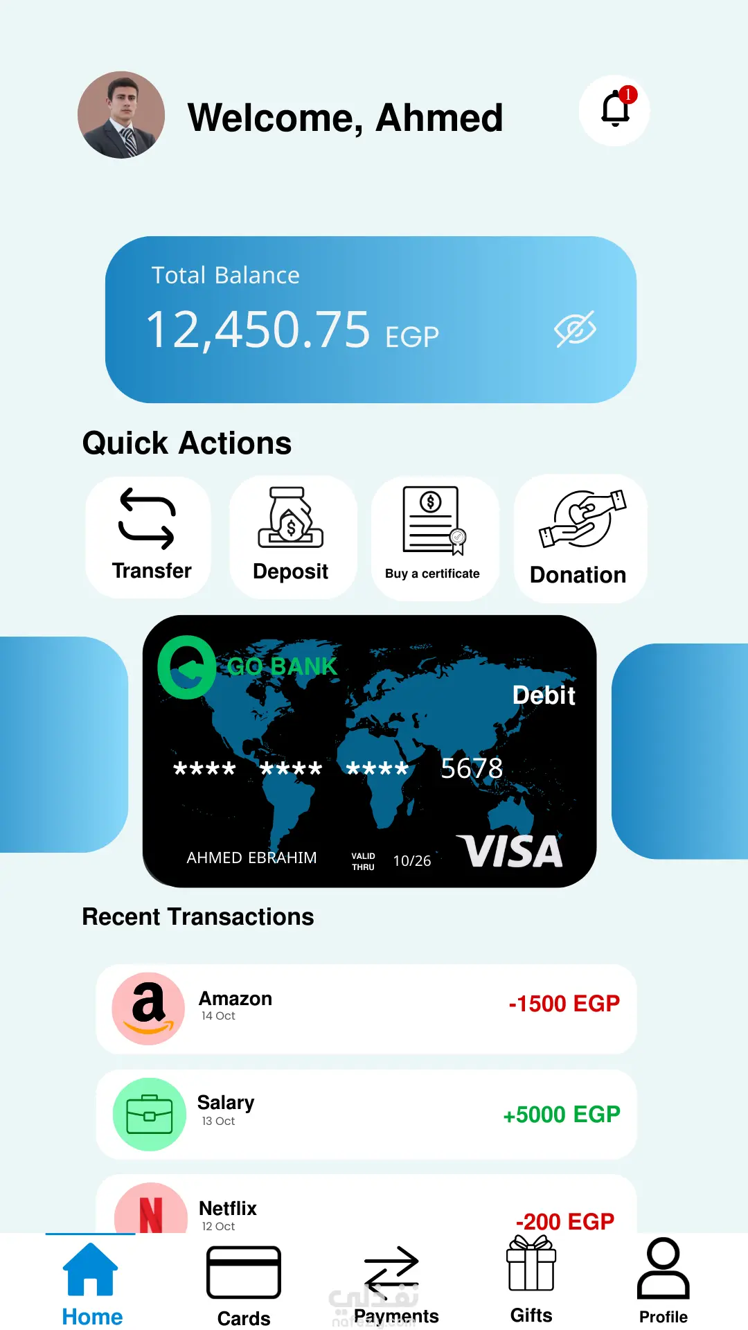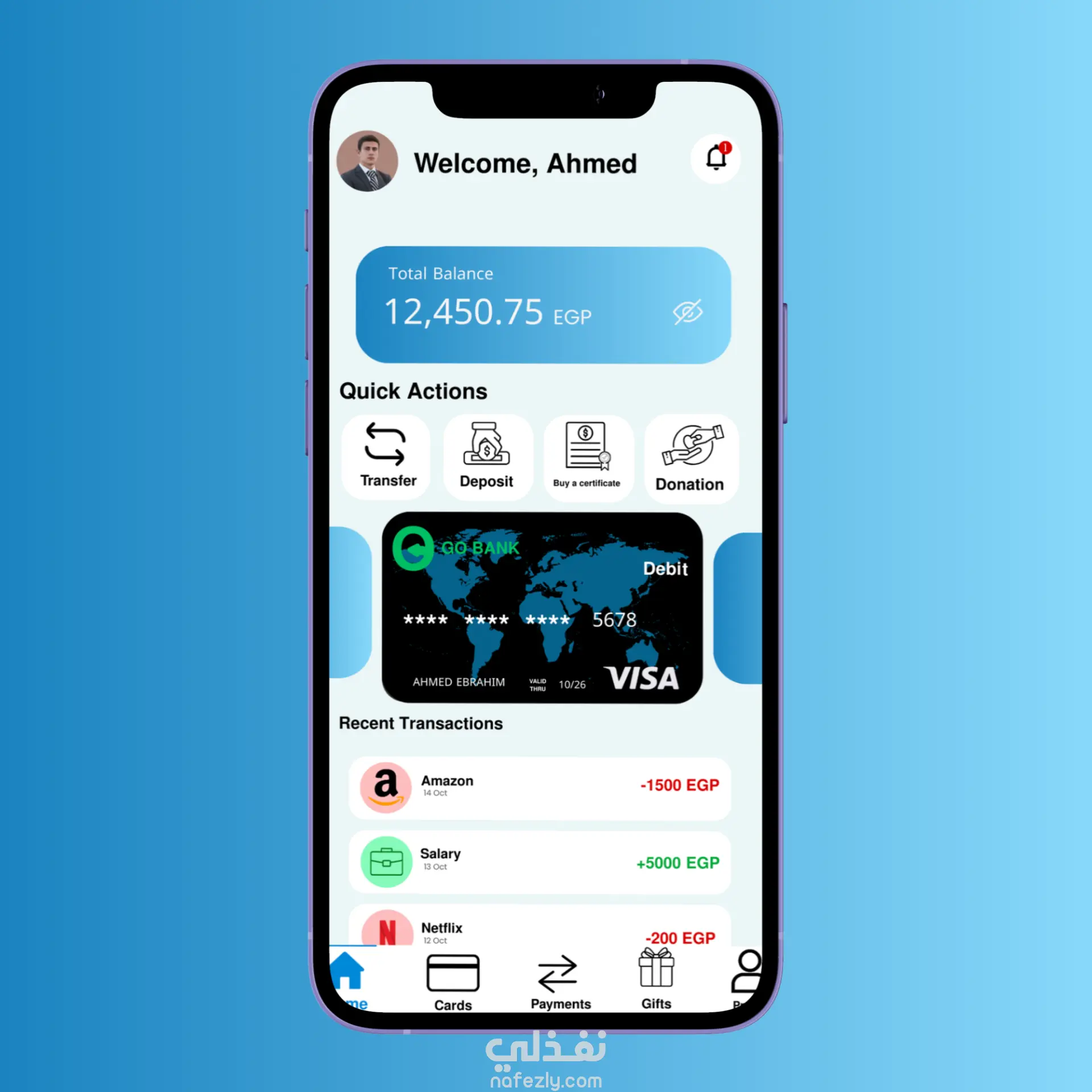 مشروع متكامل يهدف إلى خلق تجربة مصرفية عصرية تجمع بين الثقة والابتكار. تم العمل على تحويل اسم "Golden Orbit Bank" إلى هوية بصرية ملموسة تعكس الفخامة والسهولة في التعامل الرقمي. نطاق العمل: تصميم الشعار (Logo Design): ابتكار شعار يدمج بين حرف (G) و (O) بشكل انسيابي يعبر عن "المدار" (Orbit) مع سهم داخلي يرمز لتدفق العمليات والنمو. الهوية البصرية: تحديد لوحة ألوان ملكية (ذهبي، أسود، أبيض) مع تدرجات عصرية لاستخدامها في المطبوعات والمواد التسويقية. تصميم بطاقات الدفع (Cards Design): ابتكار 6 نماذج مختلفة لبطاقات (Visa & Mastercard) تشمل تصاميم كلاسيكية، شبابية، وتصاميم فاخرة (Pharaonic Edition). واجهة المستخدم (UI Design): تصميم شاشات تسجيل الدخول (Login) مع دعم البصمة. تصميم لوحة التحكم الرئيسية (Dashboard) التي تعرض الرصيد، الحركات الأخيرة، والوصول السريع للتحويلات والخدمات. التطبيقات الواقعية (Mockups): تقديم التصاميم على مظاريف رسمية، شاشات هواتف ذكية، وواجهات ماكينات الصراف الآلي (ATM) لضمان اتساق الهوية في كل نقاط التواصل مع العميل.