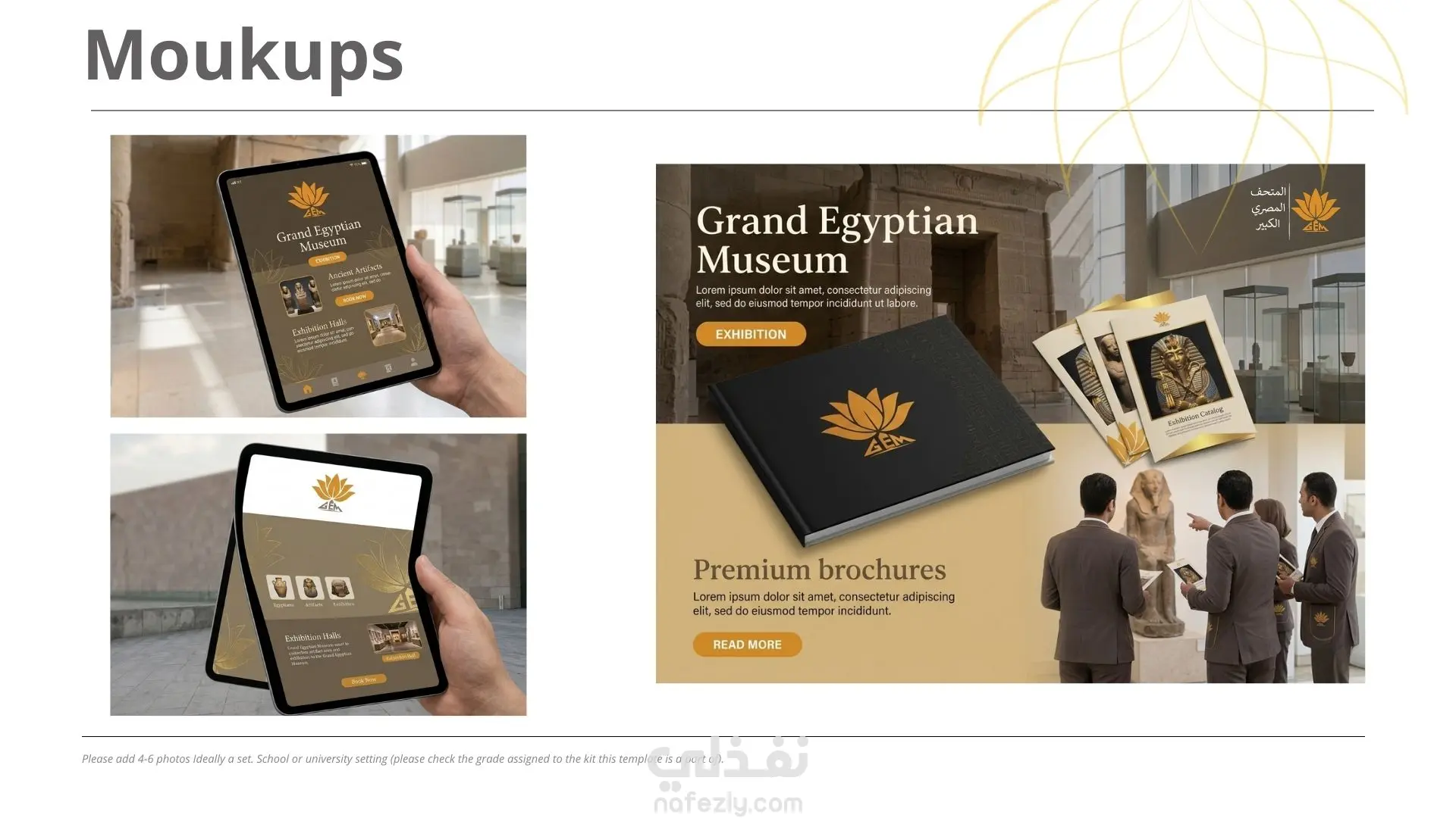 > salma: قمت بإعادة تصميم هوية بصرية مستوحاة من هوية Grand Egyptian Museum، حيث ركز التصميم على إبراز الطابع الحضاري والتاريخي لمصر بطريقة عصرية وبسيطة. يعتمد التصميم على دمج الرموز المصرية القديمة مثل زهرة اللوتس والأهرامات مع أسلوب تصميم حديث (Minimalist Design) ليعكس عظمة الحضارة المصرية ويعطي إحساسًا بالفخامة والهوية الثقافية. يشمل العمل: تصميم شعار مستوحى من الطابع الفرعوني الحديث اختيار ألوان تعبر عن التراث المصري مثل الذهبي والأسود تصميم تطبيقات للهوية البصرية مثل الأختام والموكاب تقديم تصور بصري متكامل يمكن استخدامه في المواد التسويقية والرقمية تم تنفيذ التصميم باستخدام برامج التصميم الاحترافية مثل: Adobe Illustrator Adobe Photoshop canva AI prompt الهدف من المشروع هو تقديم رؤية حديثة للهوية البصرية تعكس عراقة التاريخ المصري بأسلوب معاصر وجذاب.