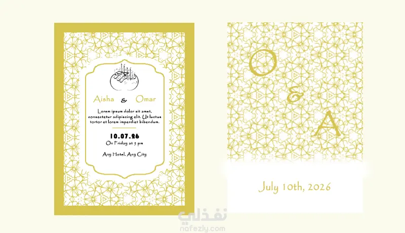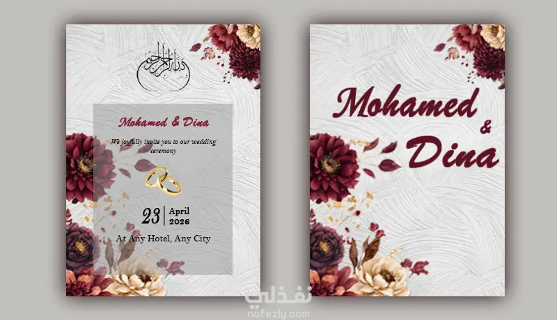 أصمم دعوات الزفاف والمناسبات بهوية بصرية فريدة تدمج بين فخامة النمط الكلاسيكي وانسيابية التصاميم العصرية.
