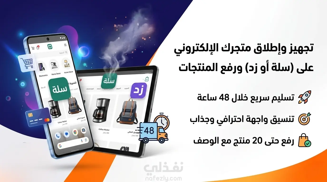 تجهيز وإطلاق متجرك الاحترافي على منصة (سلة أو زد) ورفع المنتجات خلال 48 ساعة