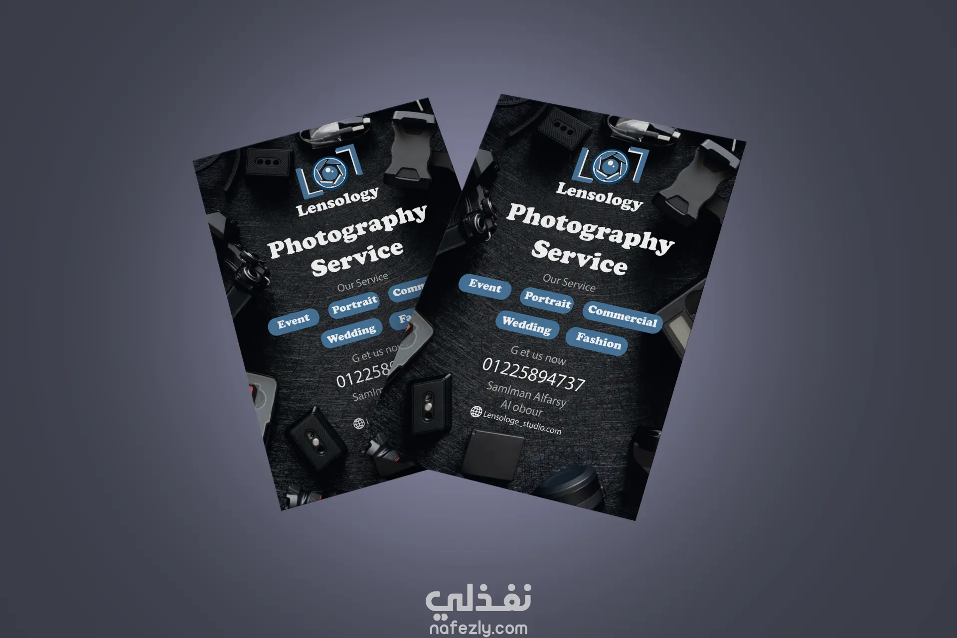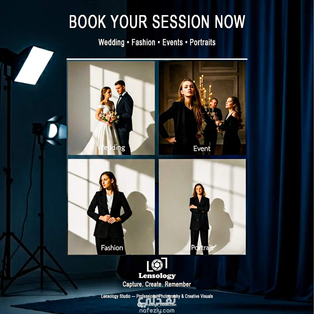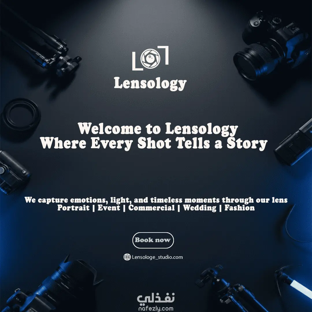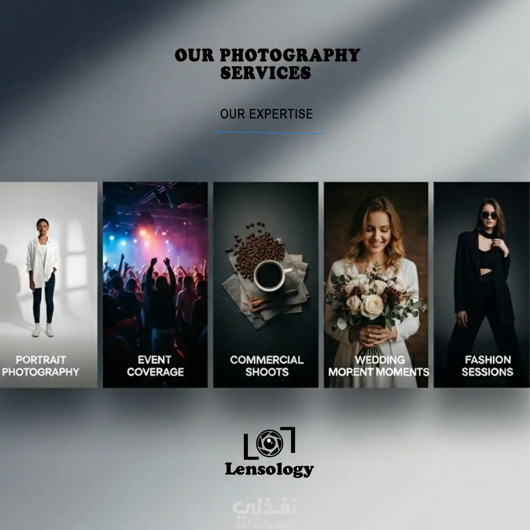 تم تنفيذ مشروع كامل لتصميم الهوية البصرية لاستوديو تصوير باسم Lensology، يركز على تقديم تجربة تصوير عصرية بلمسة فنية.