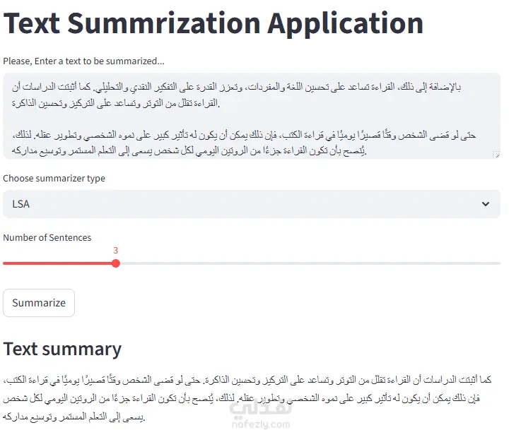 تطبيق ويب لتلخيص النصوص باستخدام بايثون