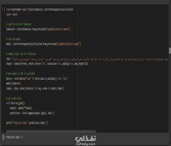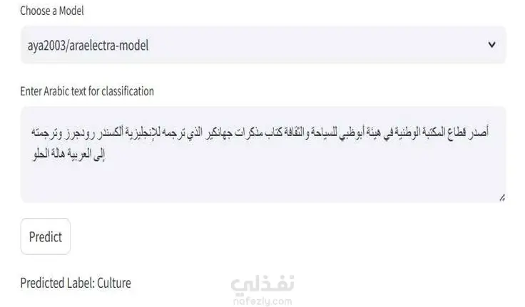 أقدم لكم حلاً متكاملاً يعتمد على تقنيات معالجة اللغات الطبيعية (NLP) لتصنيف النصوص والأخبار العربية بشكل آلي ودقيق. تم بناء هذا المشروع باستخدام أحدث تقنيات التعلم العميق (Deep Learning) ونماذج المحولات (Transformers) المخصصة للغة العربية، مما يضمن كفاءة عالية في تحليل وفهم المحتوى النصي المعقد. المميزات التقنية للنظام: 1) استخدام نماذج متطورة: يعتمد النظام على نماذج Transformer مثلAraElctra و MarBert و AraBert، مما يمنحه قدرة فائقة على فهم السياق اللغوي العربي. 2) دقة عالية: حقق النموذج نسبة دقة تصل إلى 94%، مما يجعله موثوقاً في البيئات العملية. 3) تعدد التصنيفات: القدرة على تصنيف النصوص إلى 7 مجالات مختلفة بدقة (سياسة، اقتصاد، رياضة، طب، تكنولوجيا، دين، وثقافة). 4)معالجة لغوية متكاملة: يتضمن النظام مراحل تنظيف البيانات (Preprocessing) وإزالة الضجيج النصي والكلمات الشائعة (Stop Words) لرفع جودة النتائج. 5) واجهة مستخدم تفاعلية: تم تطوير تطبيق ويب باستخدام Streamlit يتيح رفع النصوص والحصول على نتائج التصنيف فوراً مع تمثيل بياني لتوزيع الاحتمالات.
