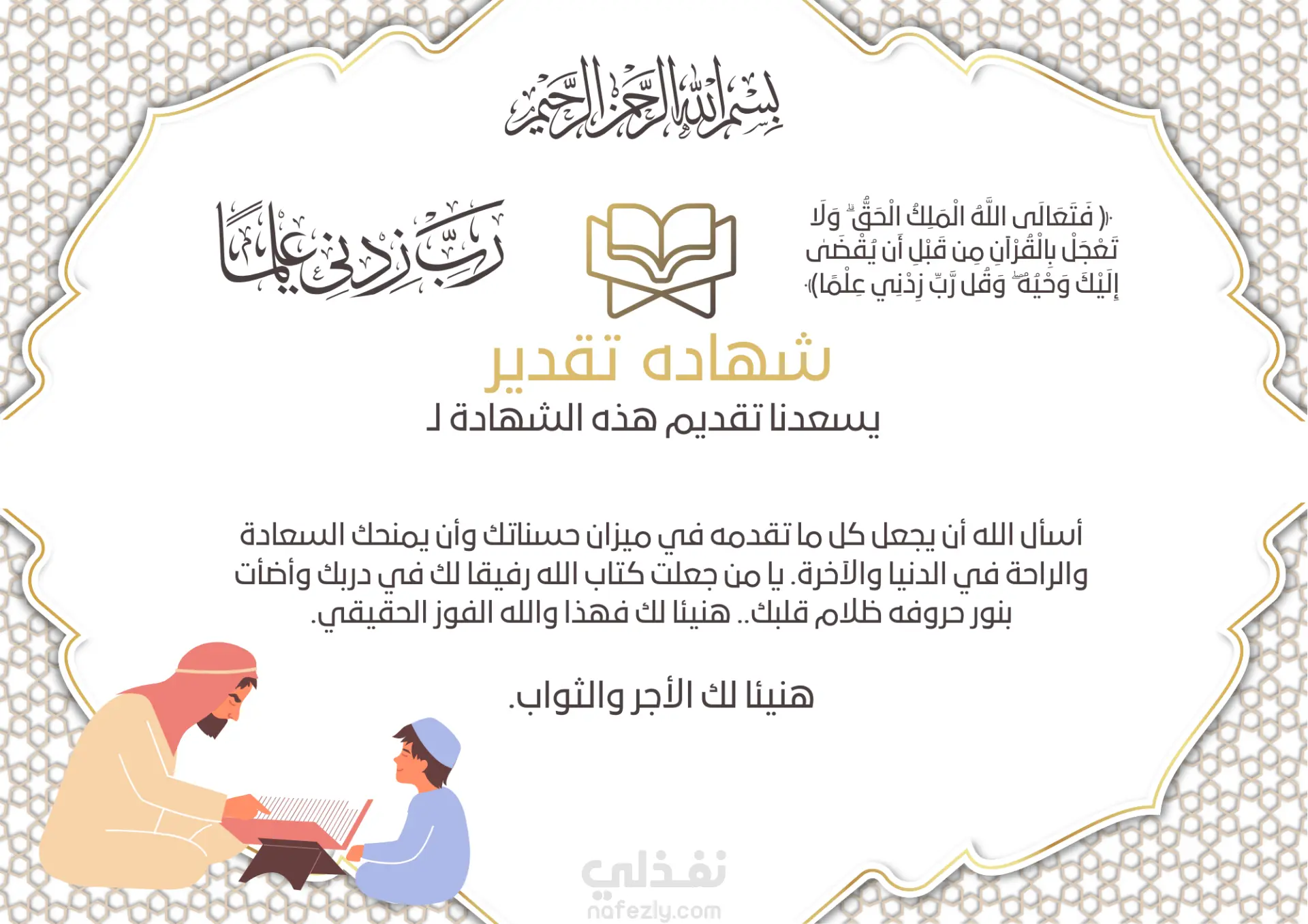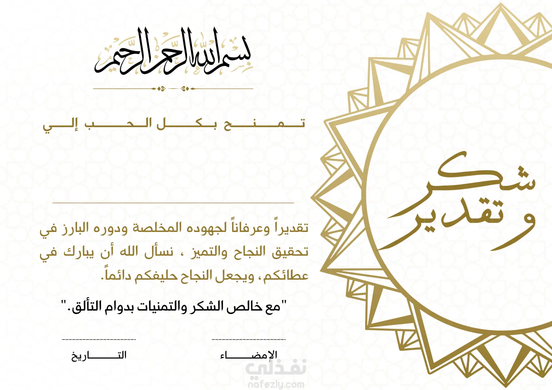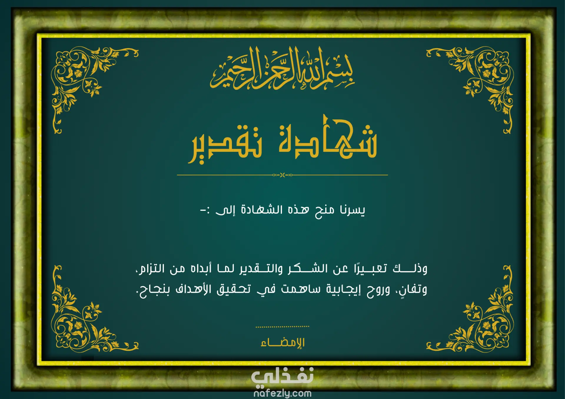 شهاده تقدير باللغه العربيه