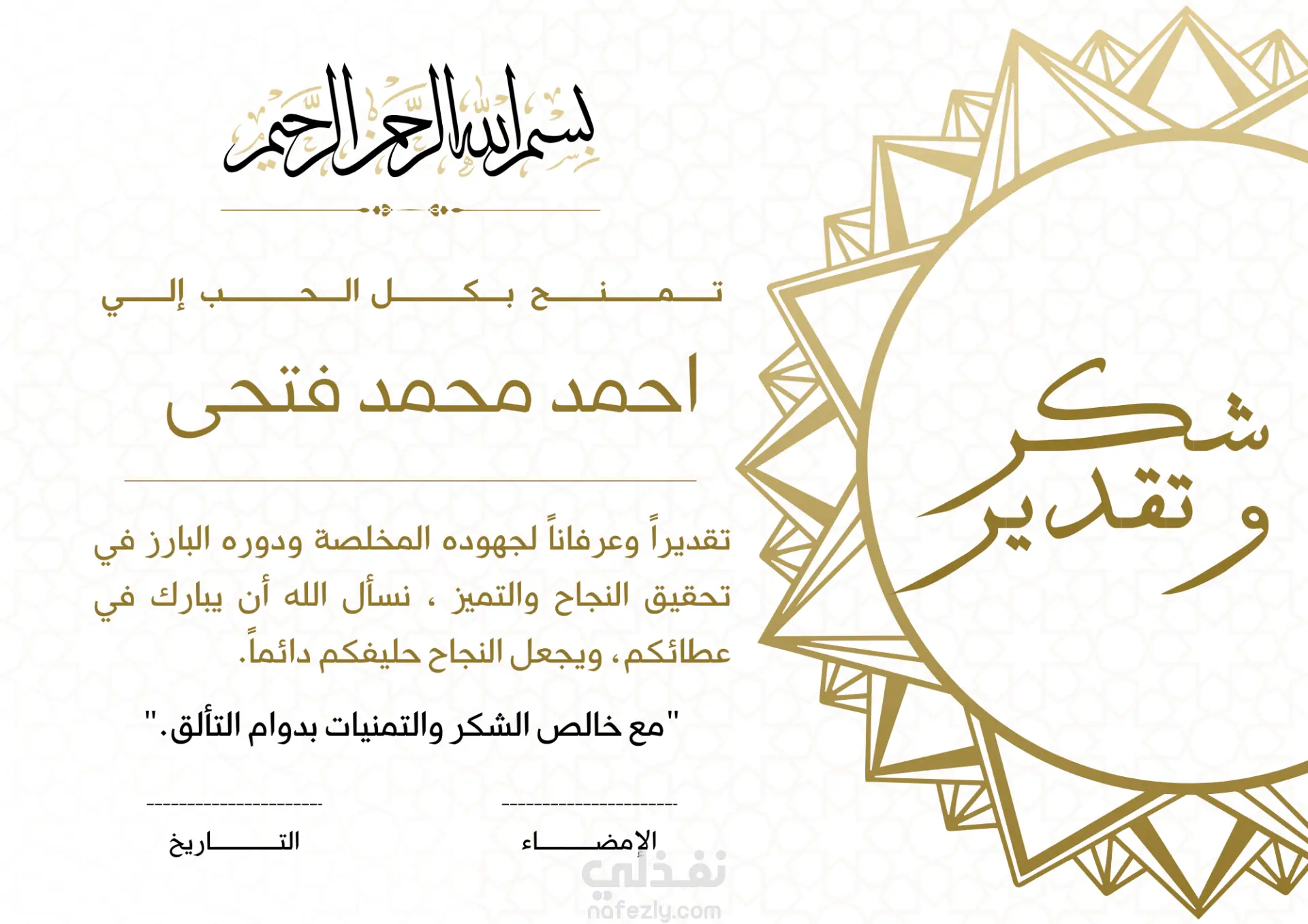 السلام عليكم ورحمة الله وبركاته، معكِ سارة، خبيرة في التعامل مع منصة Canva لتنفيذ تصاميم احترافية ومبتكرة. قرأت طلبكِ وأهتم جداً بتصميم شهادات تقدير مبهجة لطلاب القرآن الكريم لتشجيعهم، مع مراعاة النقاط التالية: نماذج متنوعة: تصميمات مخصصة للأولاد والبنات بألوان جذابة. دقة وسرعة: تنفيذ سريع مع الالتزام بأي تعديلات مطلوبة. يمكنكِ مراجعة معرض أعمالي، ويسعدني البدء فوراً في هذا المشروع المبارك.
