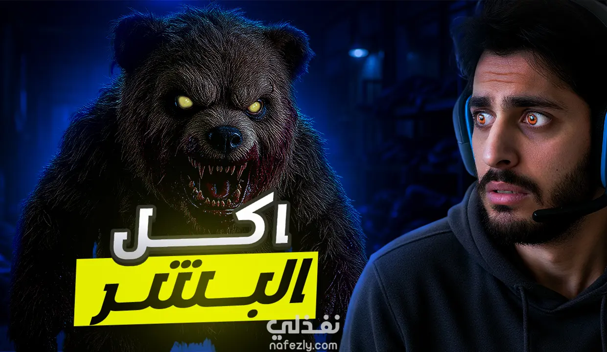 تصميم مثير يجمع بين عنصر الخطر وردّة فعل الإنسان في لحظة صادمة، حيث يظهر الدب بشكل مخيف مقابل شخصية مصدومة، ليخلق أجواء توتر وتشويق مثالية لثَمبنيل محتوى رعب أو ألعاب بقاء.