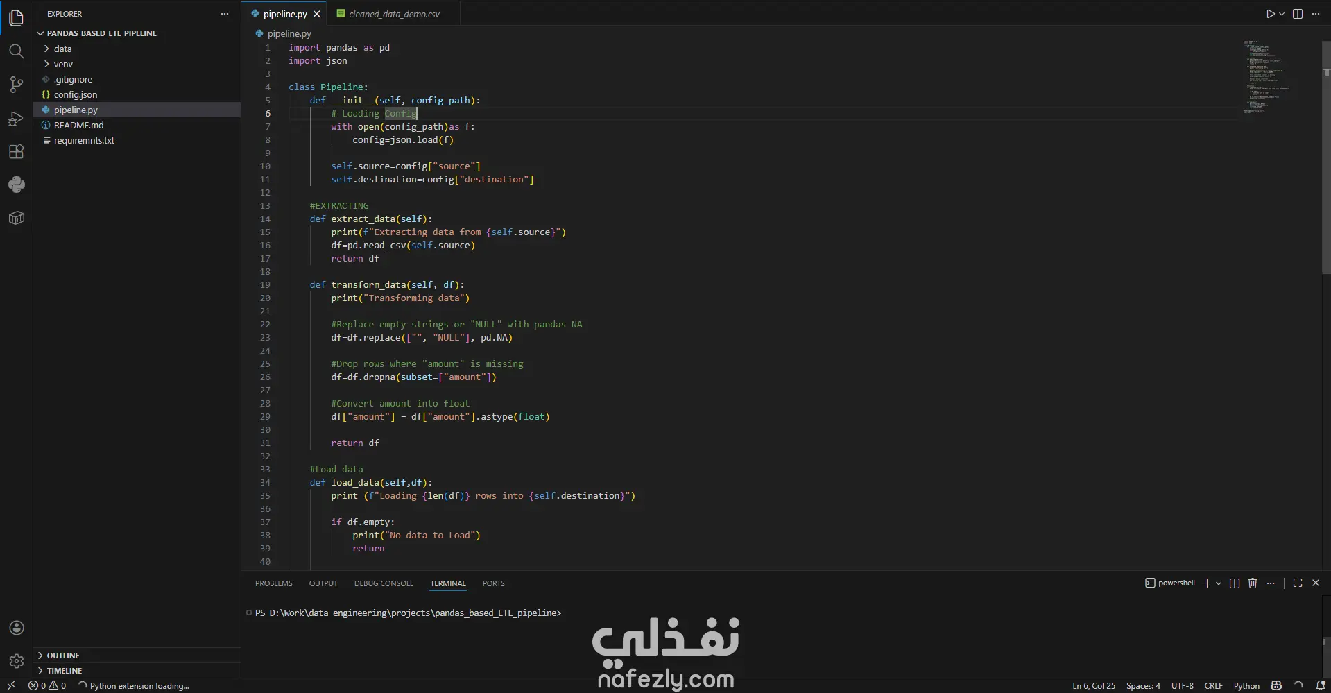 نظام ETL كامل لمعالجة البيانات وتحويلها باستخدام python, pandas