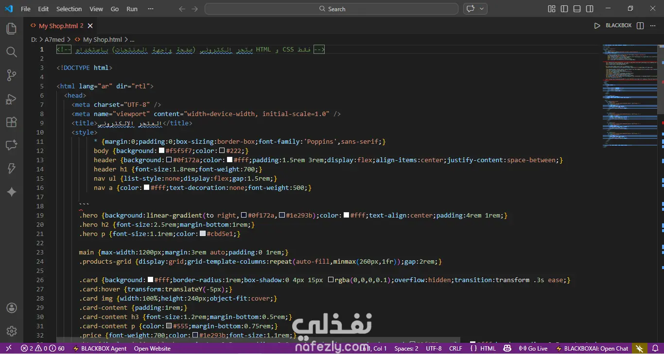 أنا أقوم بتصميم وتطوير موقع إلكتروني يساعد على عرض وشراء المنتجات بطريقة سهلة ومنظمة. الموقع يتم تصميمه باستخدام تقنيات HTML و CSS و JavaScript ليكون سريع وسهل الاستخدام ويعمل بشكل جيد على جميع الأجهزة.