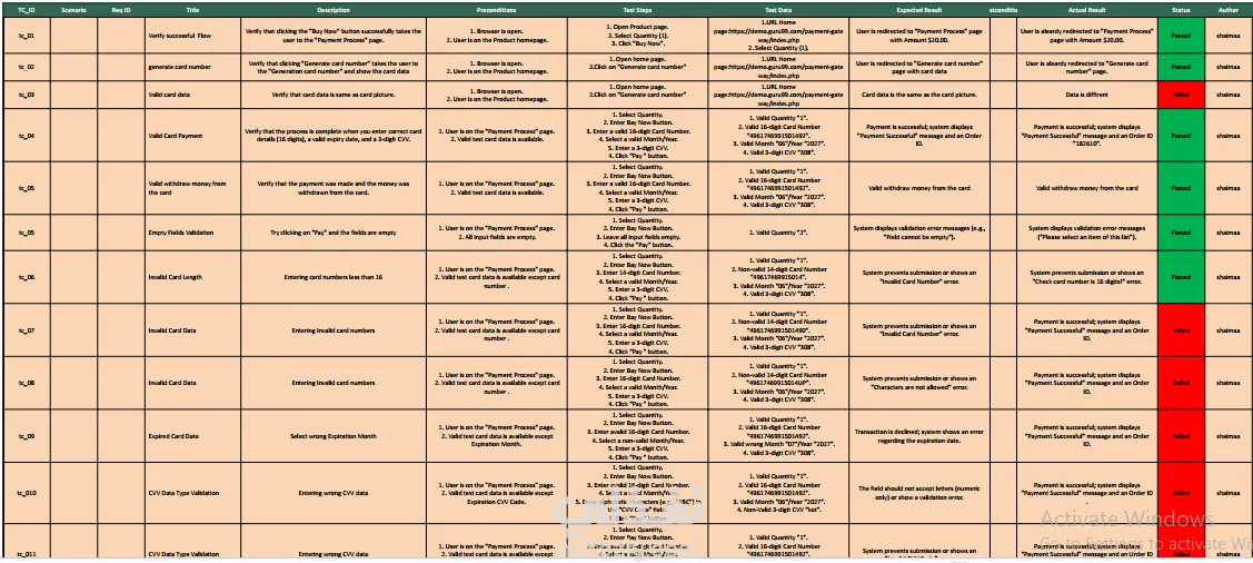 قمت بعمل اختبار يدوي لموقع افتراضي على https://demo.guru99.com/payment-gateway/purchasetoy.php وعمل ملف test cases