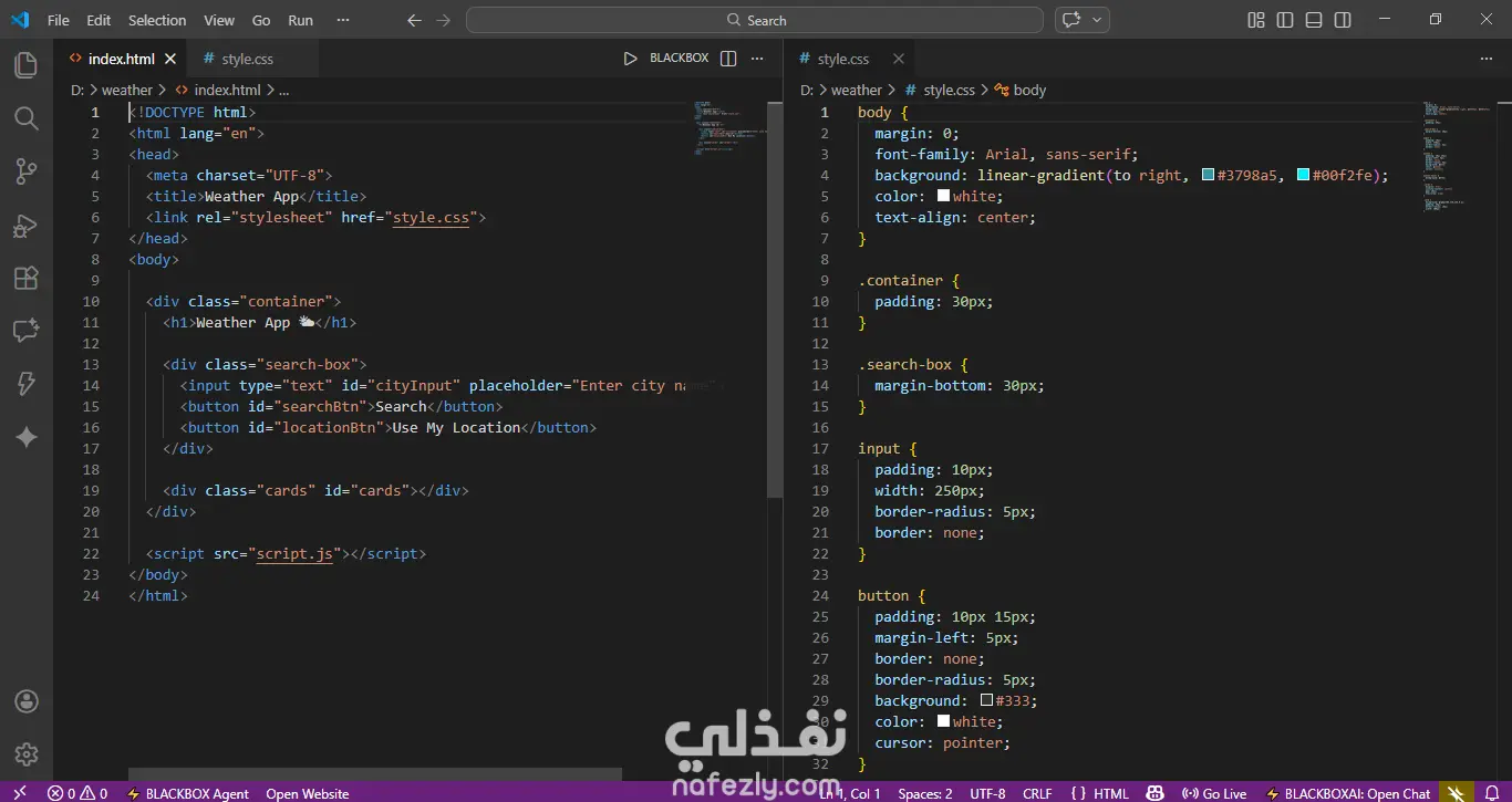 تصميم موقع لمعرفة حالة الطقس ودرجات الحرارة حسب موقعك