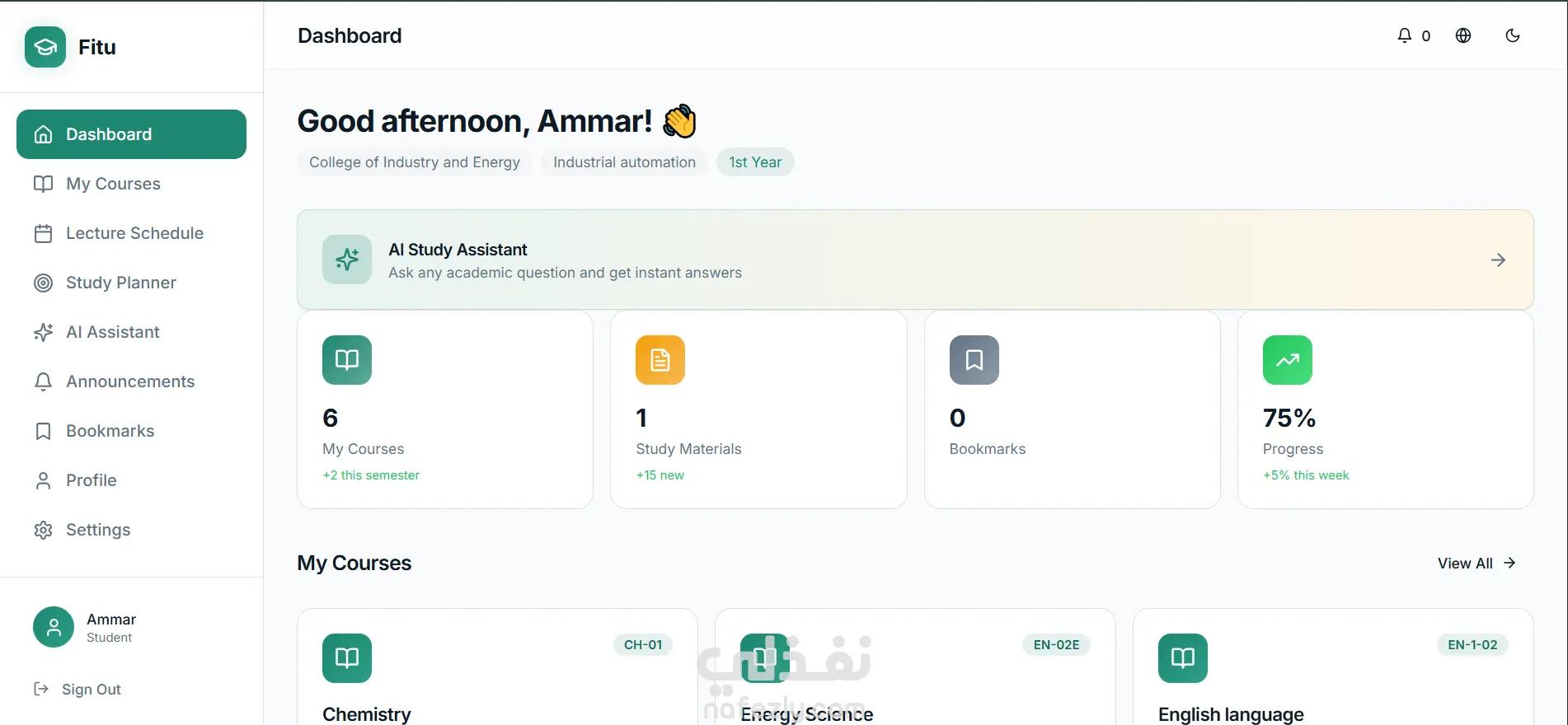 الفكرة بدأت من مشكلة حقيقية بيعاني منها كل طالب جامعي: المحاضرات والملخصات متفرقة على جروبات الواتساب والتليجرام، مفيش مكان واحد منظم يجمع كل حاجة، والطالب بيضيع وقت كبير في البحث عن المواد بدل ما يصرف الوقت ده في المذاكرة الفعلية. فيتو بتحل المشكلة دي بشكل جذري. المنصة بتجمع كل المقررات والمحاضرات والملخصات في مكان واحد، مرتبة ومنظمة حسب القسم والسنة الدراسية، فالطالب أول ما يسجل ويختار قسمه وسنته بيلاقي كل المحتوى المخصص ليه جاهز قدامه. المنصة بتدعم الأقسام الأربعة المعتمدة في الكلية: الأتمتة الصناعية، الميكاترونيكس، الأوتوترونيكس، وتكنولوجيا المعلومات. من أقوى مميزات فيتو هو المساعد الذكي المدعوم بالذكاء الاصطناعي. المساعد ده بيفهم سياق دراسة الطالب – عارف قسمه وموادّه الحالية – وبيقدر يشرح المفاهيم الصعبة، يحل المسائل، يترجم المصطلحات الأكاديمية، ويساعد الطالب يذاكر بفعالية أكتر، وكل ده بالعربي أو الإنجليزي حسب ما الطالب يحب. المنصة فيها كمان نظام كويزات متقدم بيدعم أسئلة اختيار من متعدد وصح وغلط، مع إمكانية تحديد عدد الأسئلة ونوعها ومستوى الصعوبة. بعد كل كويز، الطالب بيشوف تحليل تفصيلي لأدائه مع شرح لكل سؤال غلط فيه. والأدمن بيقدر يتابع أداء كل الطلاب من خلال تحليلات ورسوم بيانية متقدمة، وكمان يقدر يرفع أسئلة بالجملة من ملفات Excel. فيتو بتوفر كمان مخطط دراسة ذكي مع تقويم وتذكيرات، وعداد بومودورو بتقنية 25 دقيقة دراسة و5 دقائق راحة مع رسائل تحفيزية، ونظام إعلانات فورية بيوصل التحديثات من المشرفين والإدارة مباشرة للطلاب المستهدفين حسب القسم والسنة. كمان فيه نظام مهام شخصية يساعد الطالب ينظم يومه وأولوياته. من ناحية الأمان، المحاضرات محمية بعلامة مائية وبيتم الوصول ليها من خلال روابط موقعة آمنة، مع نظام صلاحيات متعدد المستويات: أدمن للتحكم الكامل، مشرف لإدارة المحتوى والإعلانات، وطالب للوصول للمحتوى المخصص. الأدمن يقدر يتتبع مين فتح كل ملخص ومين حمله ومين بص عليه بالتفصيل. المنصة مبنية بتقنيات حديثة زي React وTypeScript وTailwind CSS وVite، مع Supabase للباك إند وقاعدة البيانات، وبتدعم اللغتين العربية والإنجليزية بشكل كامل مع واجهة RTL سلسة، ووضع ليلي مريح للعين، وتصميم متجاوب بيشتغل على كل الأجهزة من كمبيوتر لموبايل لتابلت. النتيجة؟ منصة واحدة شاملة بتوفر وقت الطالب، بتحسن أداءه الأكاديمي، وبتديله كل الأدوات اللي محتاجها للنجاح في مكان واحد – لأن نجاحك يستاهل منصة تفهمك! 🎓