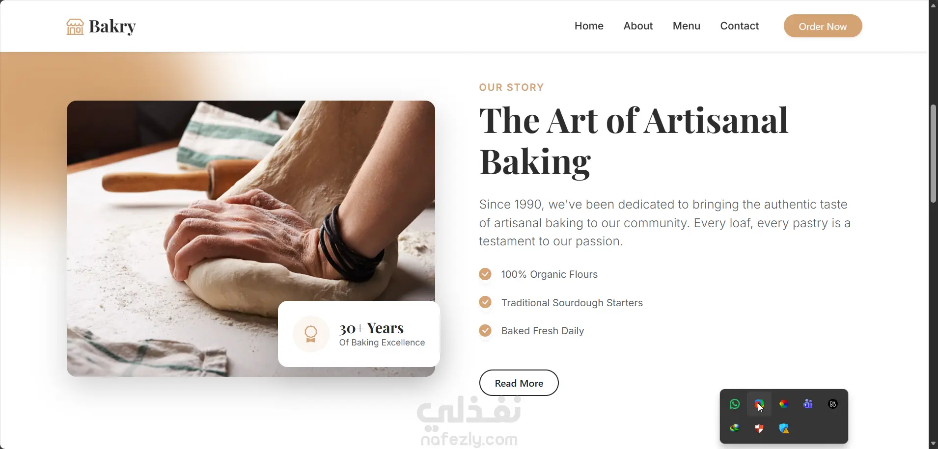 موقع ويب جاهز لمخبز يعرض منتجاته بطريقة جذابة صفحة مخبز متكاملة وسهلة الاستخدام تصميم موقع لمخبز مع إمكانية تعديل المحتوى بسهولة موقع تفاعلي لمخبز يعرض المنتجات والعروض