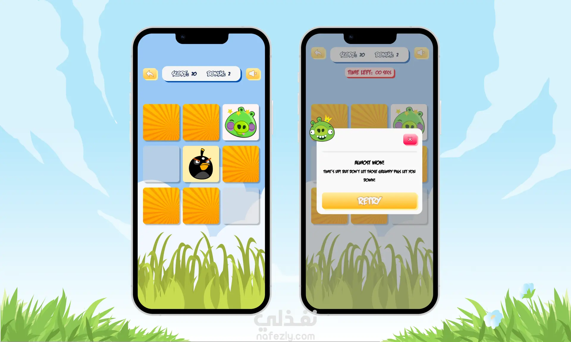 تصميم بسيط للعبة ذاكرة مستوحاة من مجموعة العاب Rovio "Angry Birds"