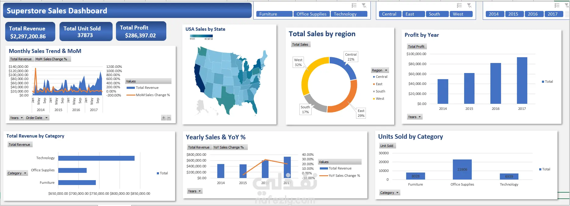 تحليل مبيعات Superstore وتصميم لوحة تحكم تفاعلية (Excel Dashboard)