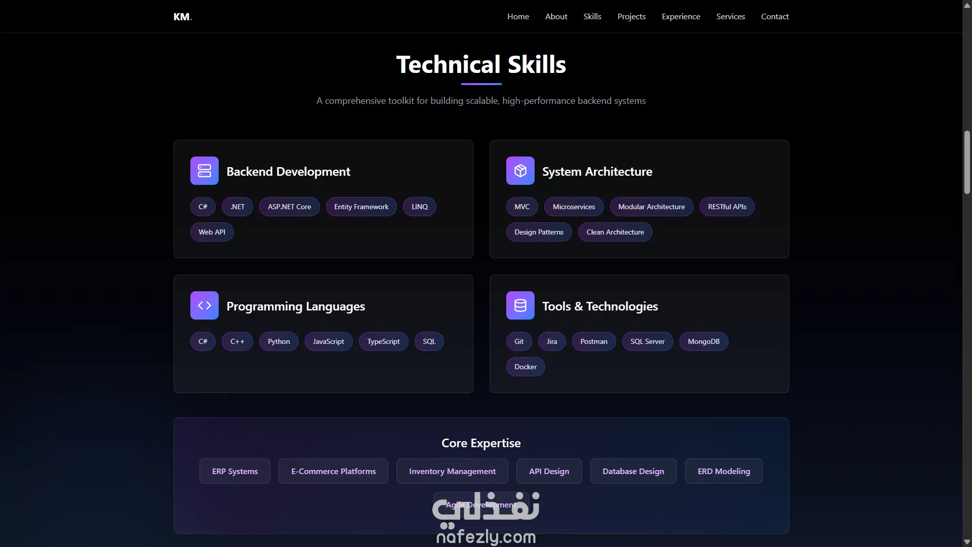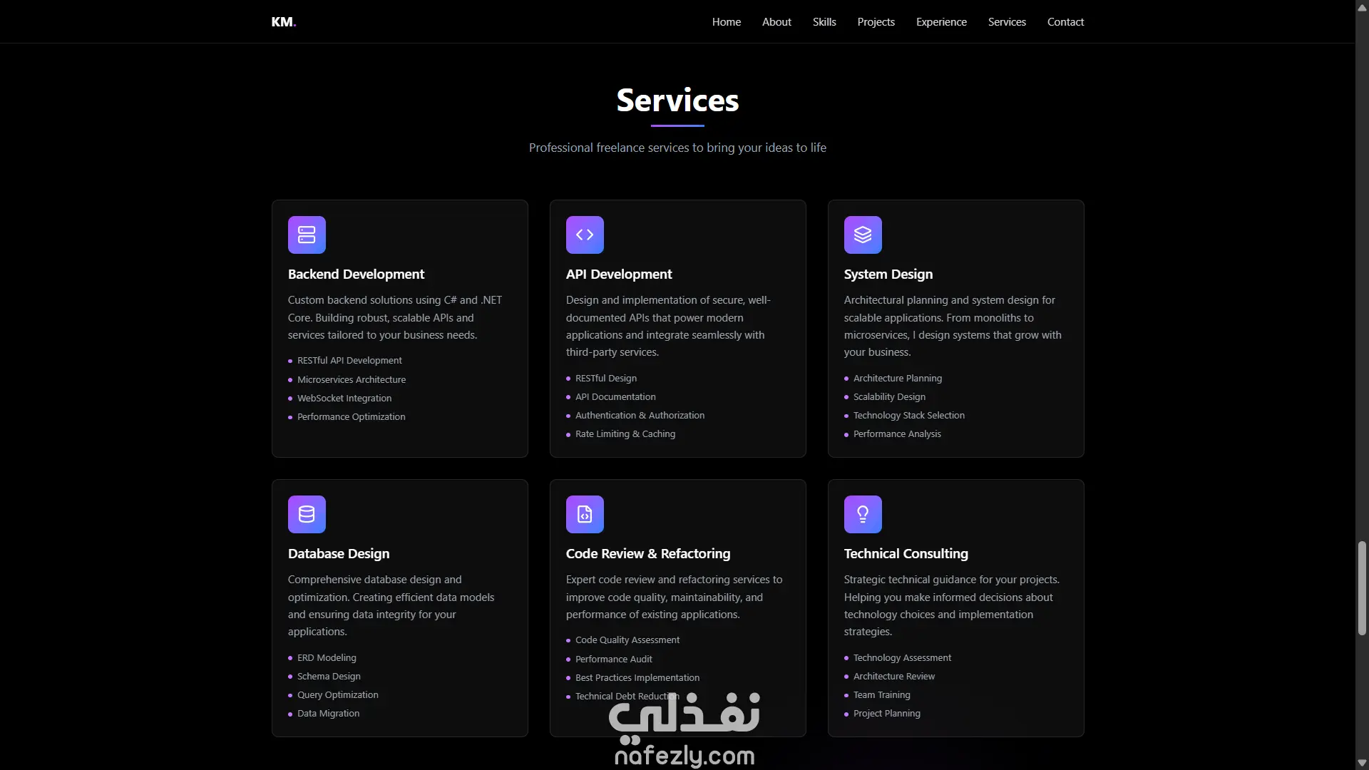 قمت بتصميم وتطوير موقع Portfolio احترافي لمطور برمجيات بهدف عرض المهارات التقنية والمشاريع بشكل احترافي يساعد على بناء الهوية المهنية وجذب العملاء. ركزت في هذا المشروع على إنشاء تجربة مستخدم حديثة مع تصميم متجاوب يعمل بكفاءة على جميع الأجهزة. الموقع يعرض المهارات البرمجية والخبرات والمشاريع بطريقة منظمة تساعد أصحاب الأعمال والعملاء على التعرف على قدرات المطور بسهولة.
