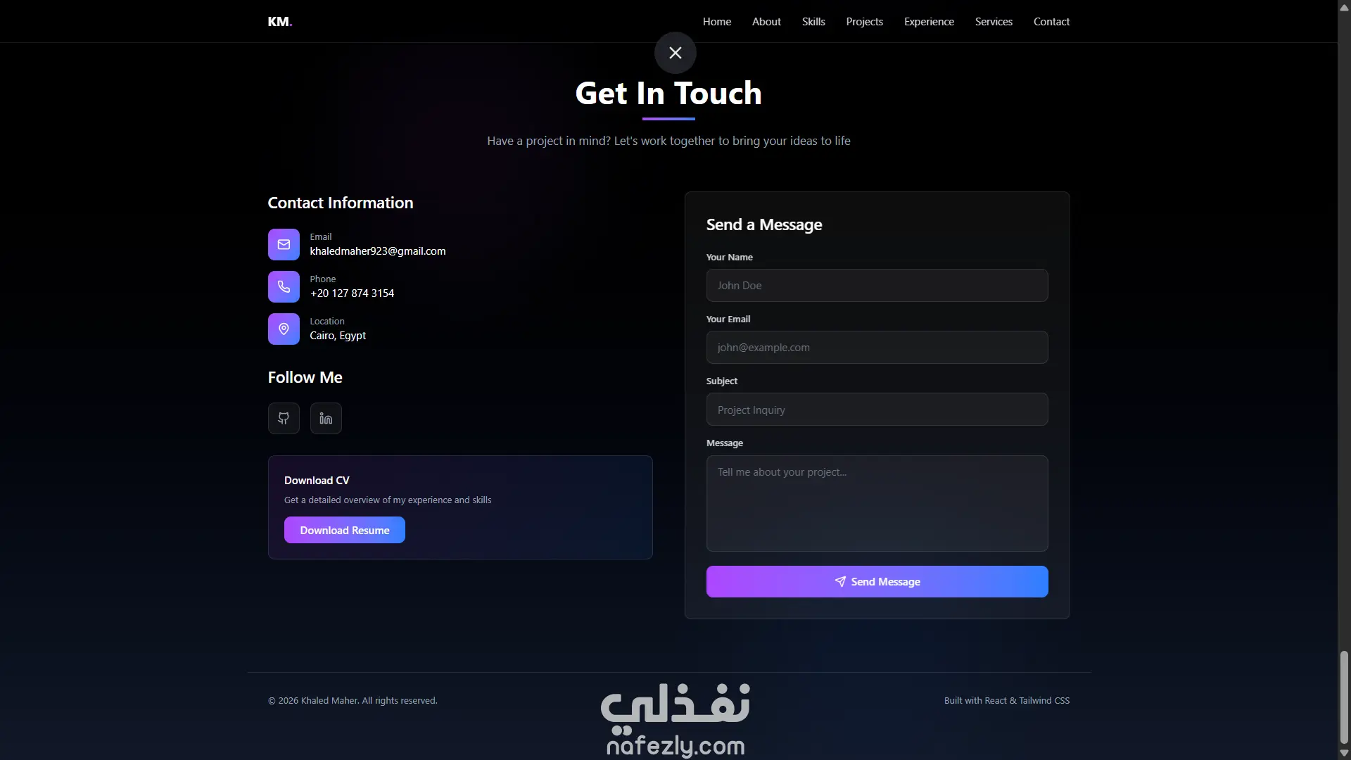 تصميم وتطوير موقع Portfolio احترافي ومتجاوب