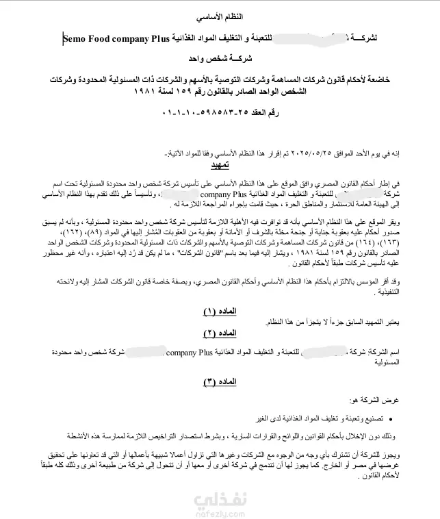 أقدم خدمة إعداد وصياغة النظام الأساسي لشركات الاموال وفقًا للقانون المصري رقم 159 لسنة 1981 او القانون 72 لسنه 2017 لخاص بالشركات.