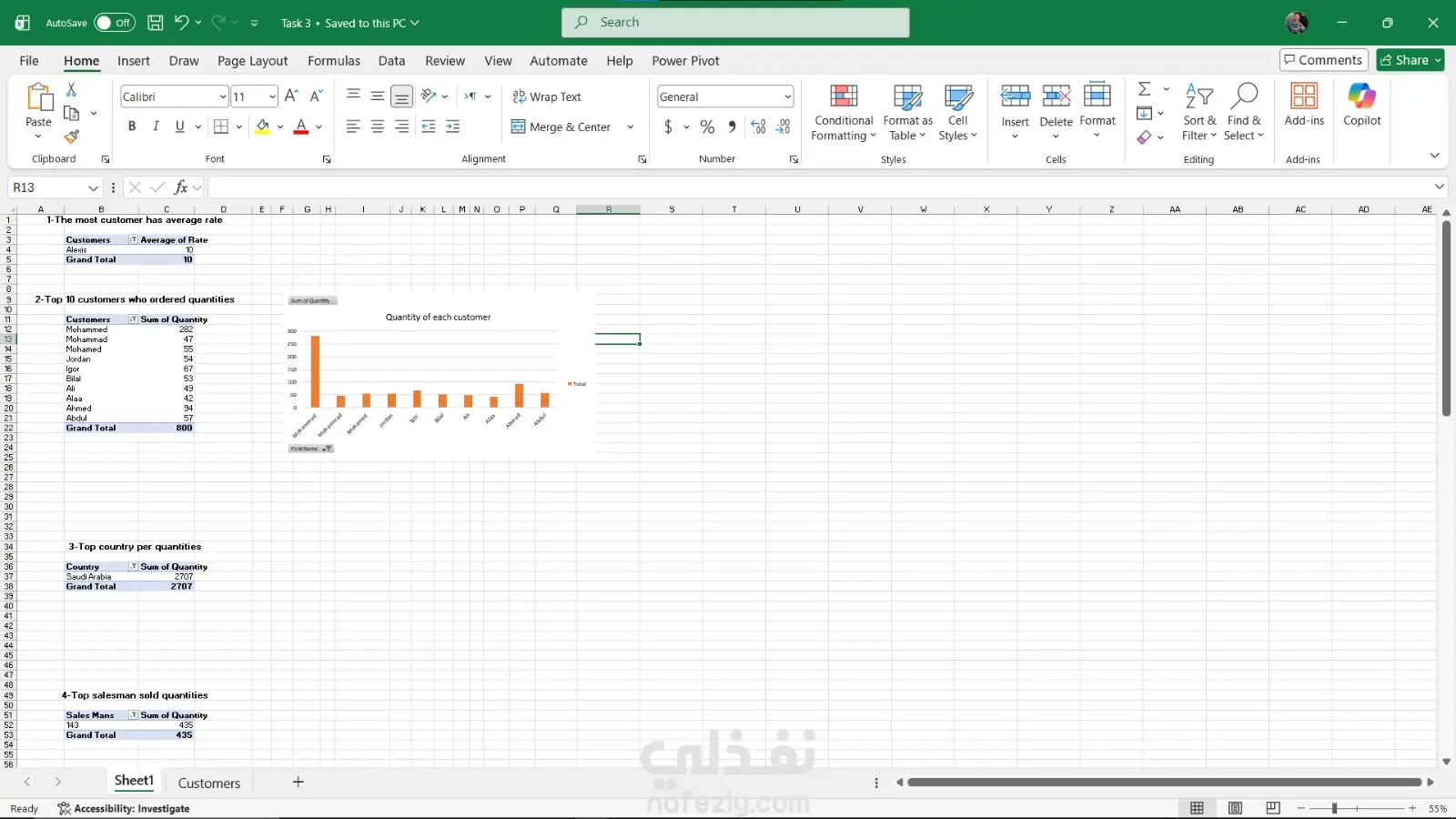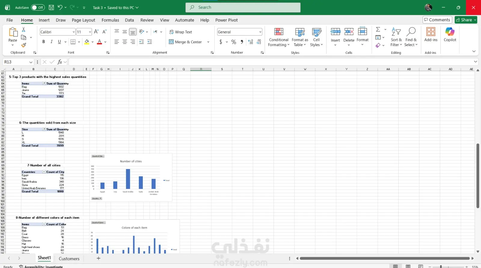 العمل على ربط 3 ملفات معا خاصة بال customers_orders_products من خلال power pivot ثم تحليلها للاجابة على 10 اسئلة مختلفه