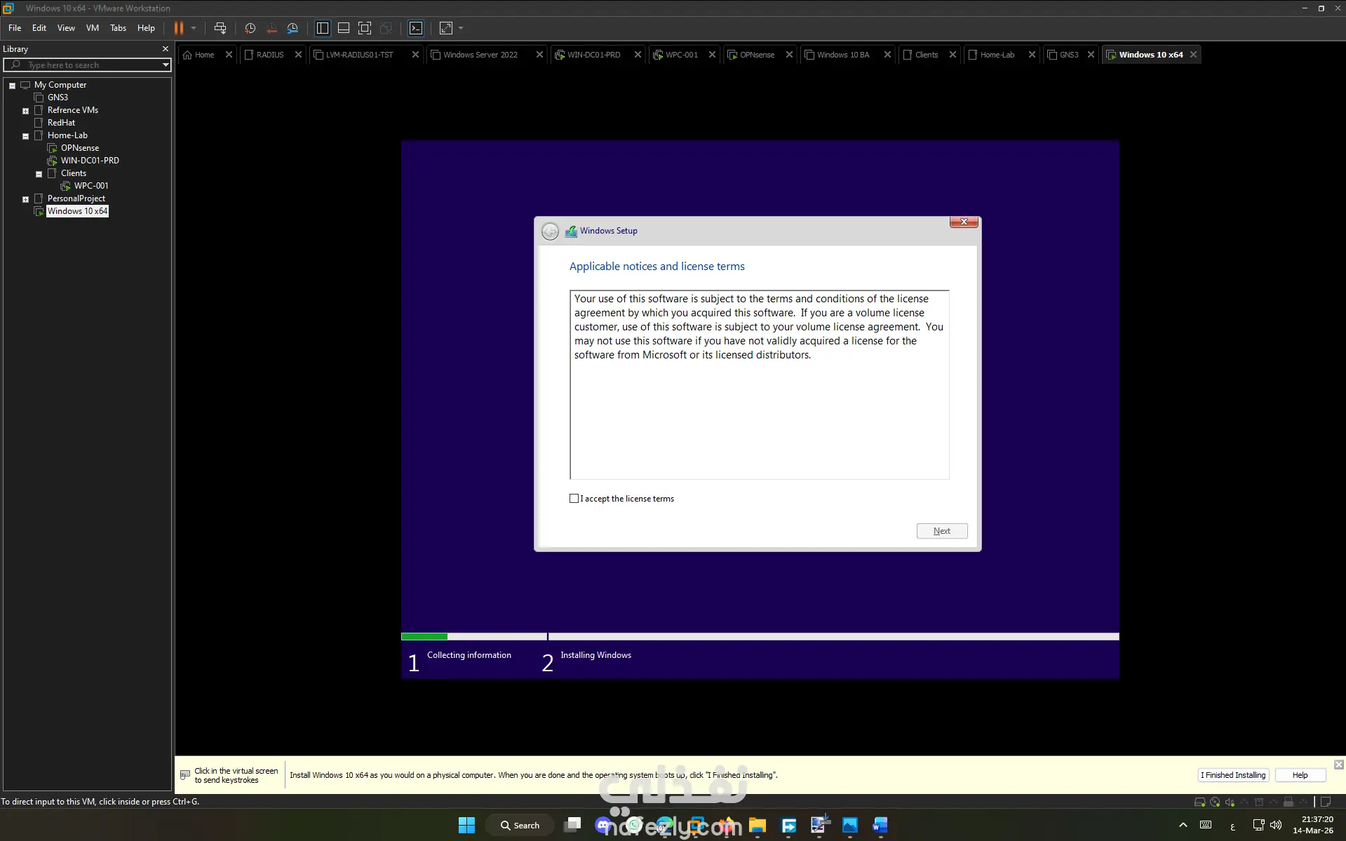 لتوفير الوقت في تثبيت البرامج الأساسية لأجهزة العمل وعمل التعديلات المطلوبة ، صممت نسخة خصيصة من Windows 10 Enterprise حيث تم تثبيت Microsoft Office و المتصفحات الرئيسية. وتصميم answer file للإعداد الأوتوماتيكي لنسخة الويندوز دون تدخلي. بهذا أستطيع أن اوفر وقت كبير في تثبيت نسخة الويندوز لعدد اجهزة كبيرة لوقت اقل ، نتيجة لتقليل الخطوات المأخوذة في كل تثبيت. الanswer file تم تصميمه بواسطة الموقع https://schneegans.de/windows/unattend-generator/ بهذا أستطيع تنفيذ بعض الأوامر مثل انشاء مستخدمين جدد ، تفعيل الأدمن ، الدخول إلى domain ، وغيره تم التنفيذ كالآتي: تثبيت نسخة الويندوز والقيام على هيئة Audit Mode ، منه يتم تنفيذ التعديلات المطلوبة وتثبيت التعريفات وحزمة البرامج الأساسية ، في هذا المشروع تم تثبيت office 2016 و 7zip و Adobe Reader ومتصفحات كروم وفايرفوكس، وفي النهاية تم تثبيت التحديثات ثم تشغيل Sysprep. بعد تنفيذ هذا ، يتم صناعة ملف wim عن طريق القيام بنسخة WinPE واستخدام برنامج gimagex. بهذا يكون لدي ملف نسخة ويندوز على هيئة .wim واضافة الanswer file وفي النهاية يتم تعديل ملف تثبيت ويندوز 10 نسخة .iso عن طريق تبديل الملف الداخلي install.wim بالملف التي تم صناعته.
