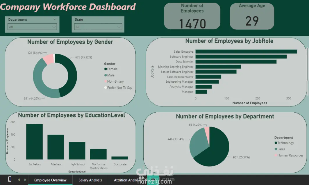 4- تحليل تأثير التعليم والحوافز المالية على بقاء الموظفمشروع تحليل بيانات الموارد البشرية يهدف إلى فهم العوامل الأساسية التي تؤثر على استقالات الموظفين ومستوى رضاهم الوظيفي داخل الشركة.