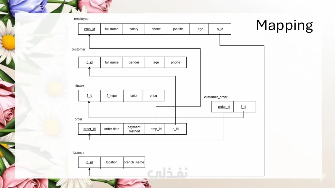 تصميم قواعد البيانات: قمت بتعريف الكيانات (Entities) وبناء مخطط الـ ERD والـ Mapping لتنظيم العلاقة بين الفروع، الموظفين، والعملاء.
