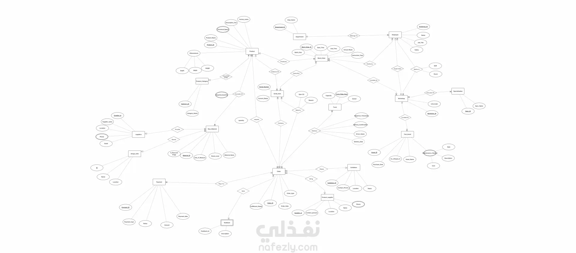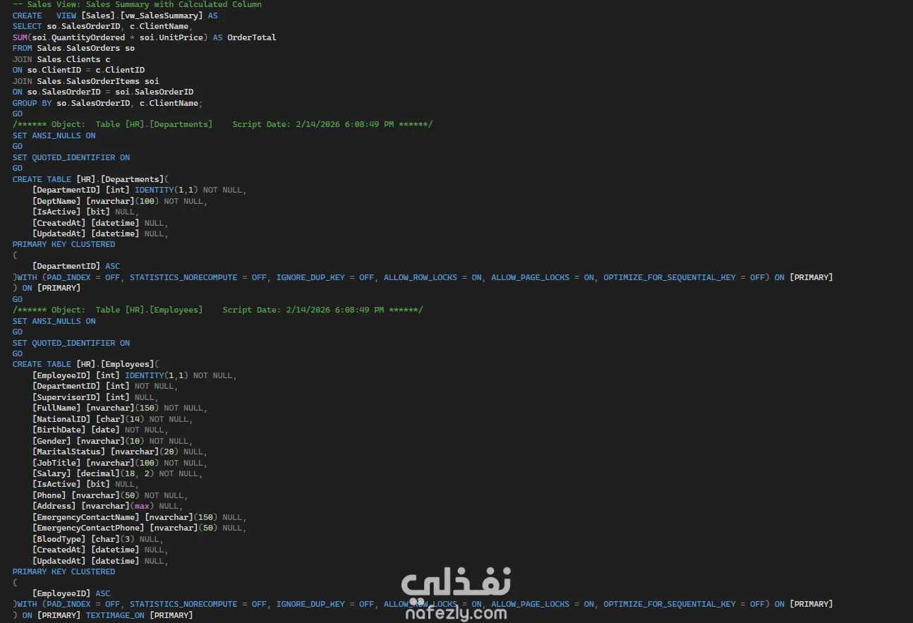 تم تصميم وتطوير قاعدة بيانات متكاملة لنظام ERP مخصص لشركات تصنيع الأثاث، بهدف تنظيم العمليات الإدارية والإنتاجية وضمان دقة البيانات وتدفقها بين الأقسام المختلفة. أبرز المميزات التقنية للمشروع: تصميم المعمارية (Database Schema): بناء نموذج كيان وعلاقة (ERD) متطور يشمل جداول الموردين، العملاء، المنتجات، الموظفين، وعمليات التصنيع. هيكلة البيانات: تنظيم جداول الطلبات (Orders) وتفاصيلها لضمان تتبع دقيق للمبيعات والمخزون. تطوير البرمجيات الداخلية (Backend Logic): استخدام Stored Procedures و Triggers لـ أتمتة العمليات المتكررة وضمان سلامة البيانات (Data Integrity). تحسين الأداء: إنشاء Indexed Views لتسريع استعلامات التقارير المعقدة وتوفير رؤية فورية لأداء المصنع. إدارة المخزون والتوريد: ربط الموردين بالمواد الخام والمنتجات النهائية لضمان عدم توقف خطوط الإنتاج. ما يقدمه هذا النظام للأعمال: دقة متناهية: تقليل الأخطاء البشرية في إدخال البيانات بفضل القيود (Constraints) البرمجية القوية. تقارير فورية: استخراج تقارير تحليلية حول المبيعات الأكثر رواجاً وتكاليف التوريد. قابلية التوسع: تم بناء قاعدة البيانات لتتحمل أحجام بيانات كبيرة مع الحفاظ على سرعة الاستجابة.