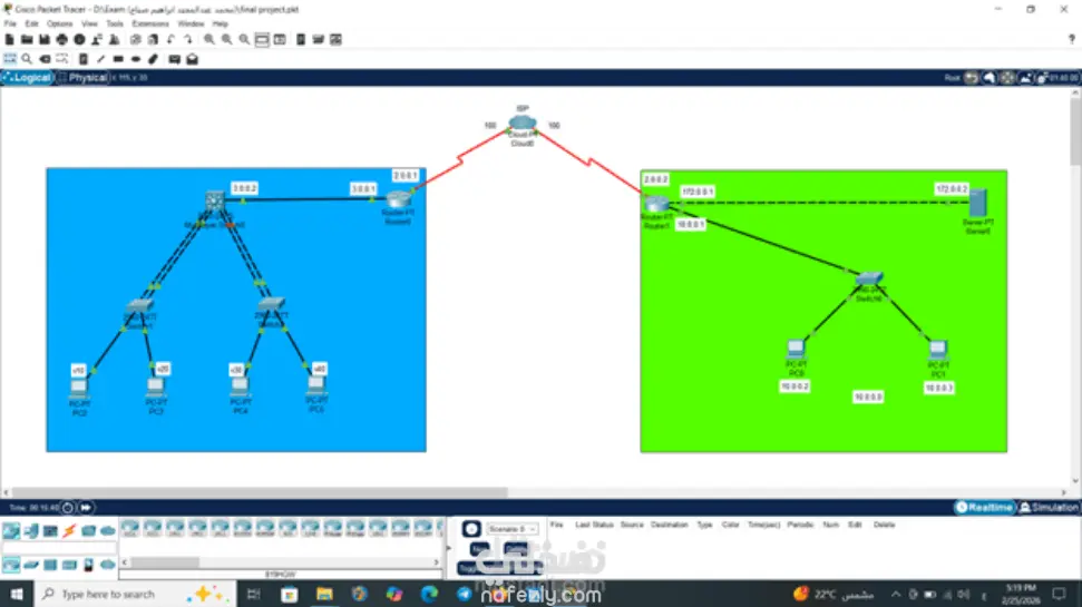 A comprehensive network design developed using Cisco Packet Tracer, simulating a multi-branch corporate environment connected via an ISP cloud. The project demonstrates advanced networking concepts, including hierarchical design, security through segmentation, and server management.