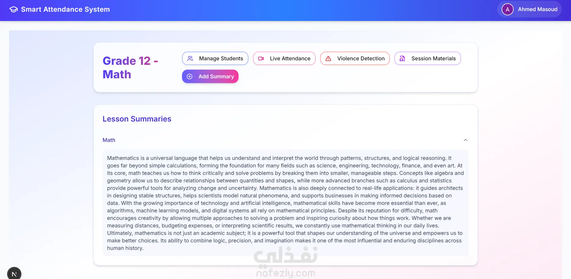 يُعد ClassSphere نظاماً ذكياً وشاملاً لإدارة الفصول الدراسية، يهدف إلى تحديث التعليم الجامعي من خلال أتمتة المهام الإدارية وتعزيز تفاعل الطلاب باستخدام الذكاء الاصطناعي. تم تطوير هذا النظام كمشروع تخرج ضمن "مبادرة رواد مصر الرقمية" (DEPI)، وهو يدمج بين العالم المادي والرقمي عبر تقنيات متطورة. يعتمد النظام في جوهره على خوارزميات رؤية الحاسوب (Computer Vision)، حيث يستخدم نموذج YuNet للكشف السريع عن الوجوه ونموذج DeepFace لتحديد الهوية بدقة، مما يسمح بتسجيل الحضور تلقائياً وبشكل مستمر طوال المحاضرة، فضلاً عن وجود نموذج مخصص لكشف العنف لضمان بيئة تعليمية آمنة. وإلى جانب المراقبة البصرية، يوظف النظام تقنيات معالجة اللغات الطبيعية (NLP) عبر دمج نموذج Whisper من OpenAI. يتيح ذلك للمحاضرين التحكم الصوتي في النظام، ويقوم بتحليل صوت المحاضرة لإنشاء ملخصات دراسية واختبارات تفاعلية للطلاب بشكل فوري وآلي. من الناحية التقنية، تم بناء التطبيق كحل متكامل (Full-stack Solution)؛ حيث تعتمد الواجهة الأمامية على Next.js لضمان سرعة الاستجابة، بينما تتولى Python عمليات المعالجة الذكية في الخلفية، مع استخدام Firebase كقاعدة بيانات فورية (Real-time Database) لضمان تزامن البيانات لحظياً بين جميع المستخدمين.
