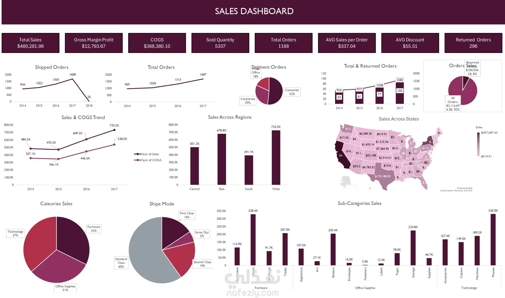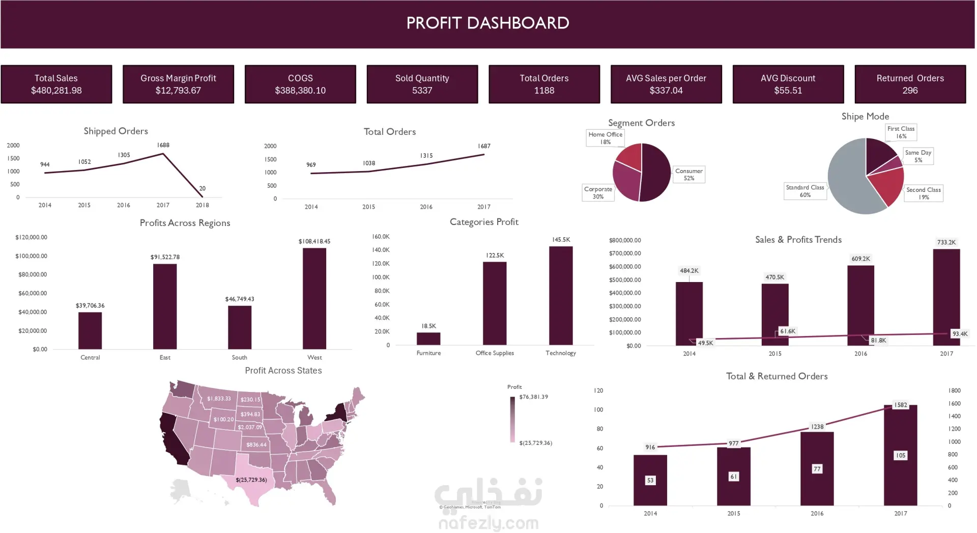 تحليل المبيعات والأرباح – Dashboard تفاعلي بـ Excel