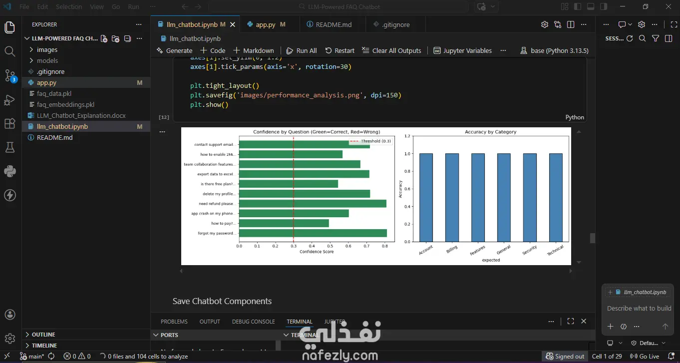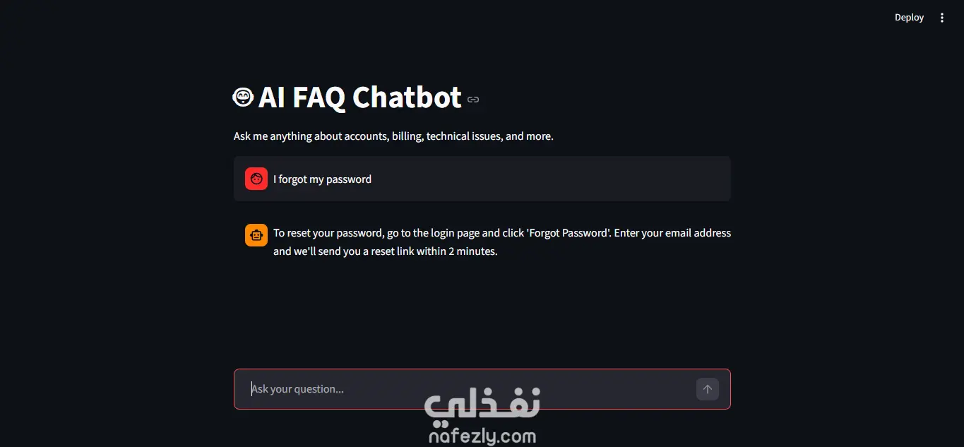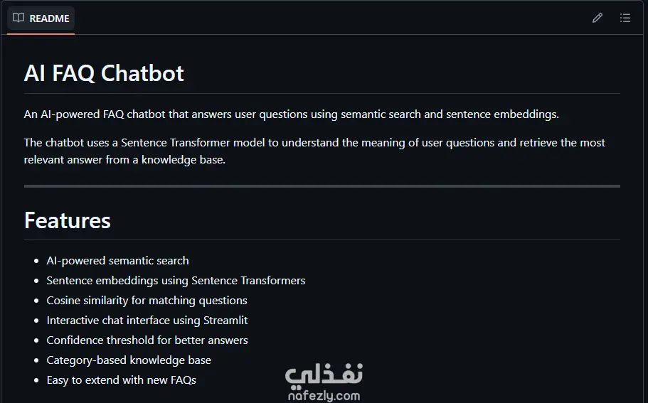 تخيل إنك عندك موظف بيشتغل 24 ساعة، بيجاوب على أسئلة عملاءك في ثوانٍ، ومش بيغلط ولا بيتعب. ده مش خيال — ده اللي بنيته فعلاً. شات بوت مدعوم بالذكاء الاصطناعي بيفهم السؤال مش بس بيدور على كلمة، وبيجيب الإجابة الأقرب حتى لو السؤال اتكتب بشكل مختلف. بُني بـ Python وتقنية Sentence Transformers وواجهة تفاعلية على Streamlit.