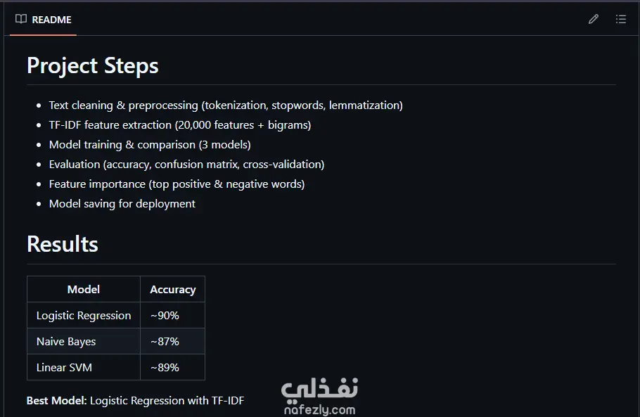 الناس بتقول كتير — بس إيه اللي بيقولوه فعلاً؟ حللت أكتر من 50,000 تقييم حقيقي لأفلام وقدرت النموذج يفرق بين الإيجابي والسلبي بدقة وصلت لـ 90%. ده النوع من التحليل اللي الشركات الكبيرة بتستخدمه عشان تفهم رأي العملاء في المنتجات والخدمات — وأنا نفذته من الصفر.
