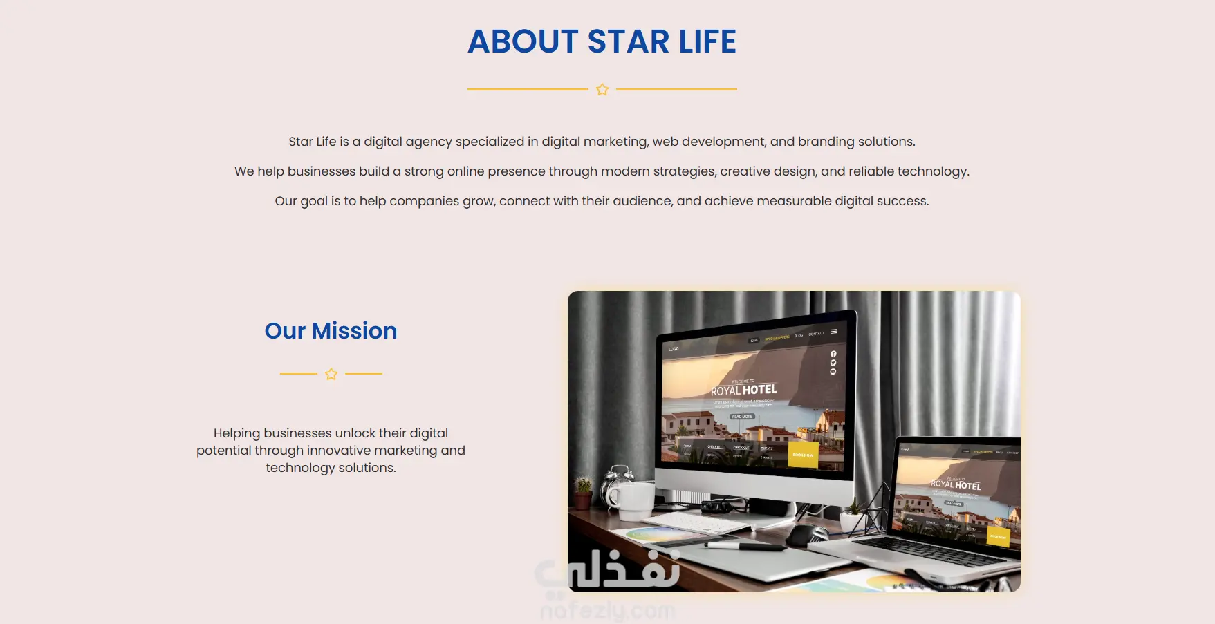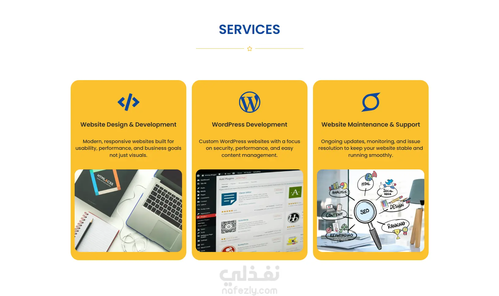 الهدف من الموقع كان إنشاء صفحة واحدة منظمة تعرض الخدمات بشكل احترافي،
