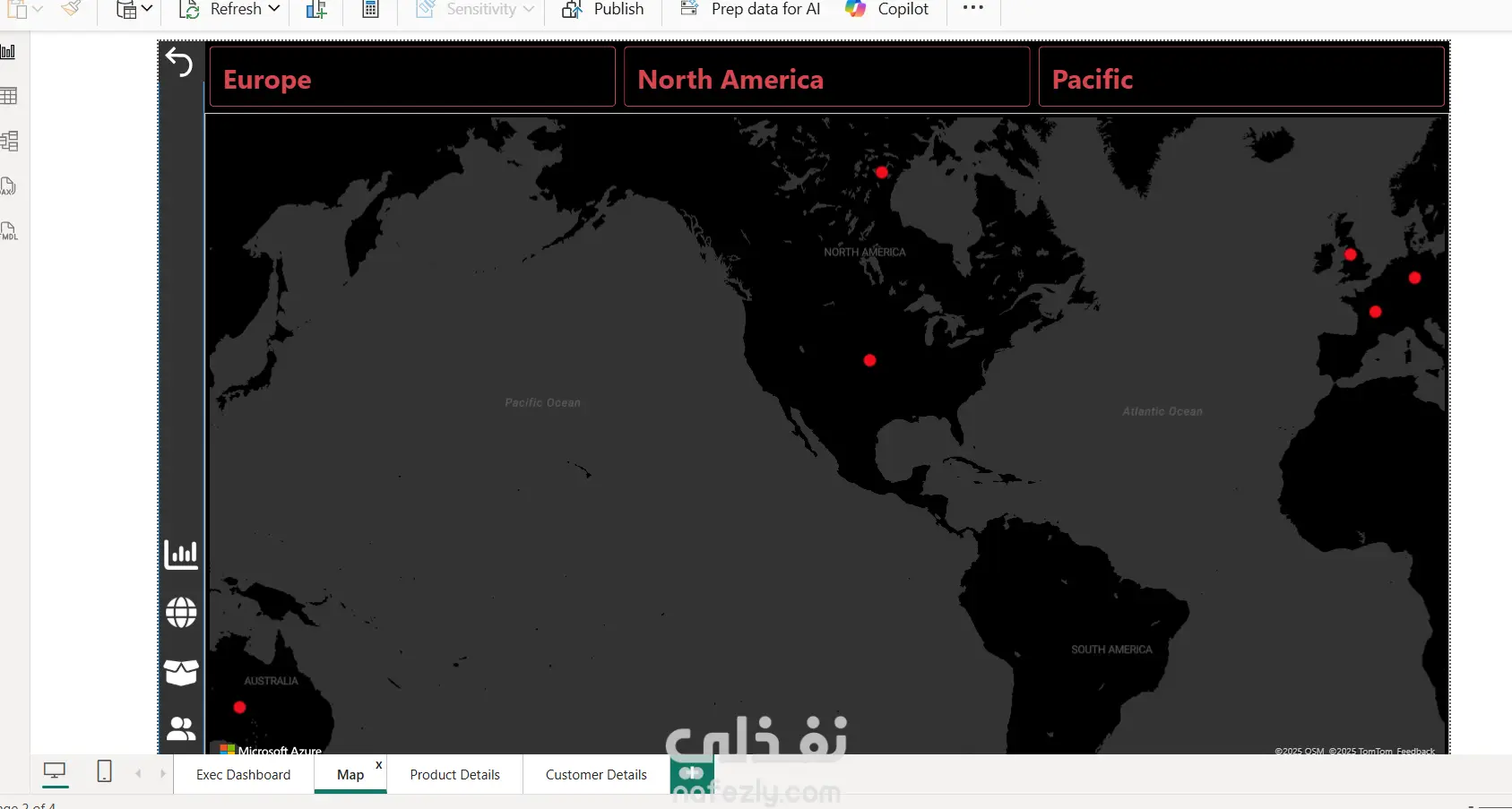 انشاء داشبورد مكونة من اربع صفحات لتحليل بيانات باستخدام power BI