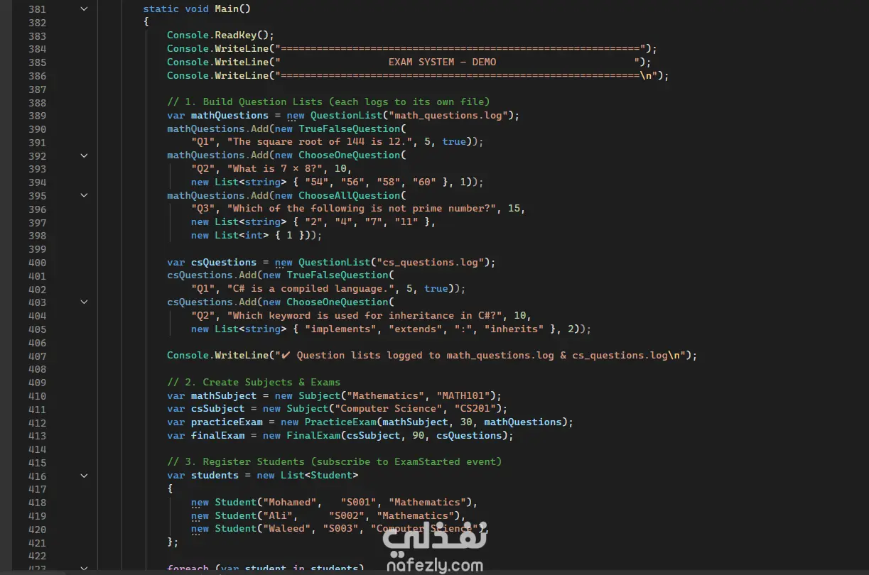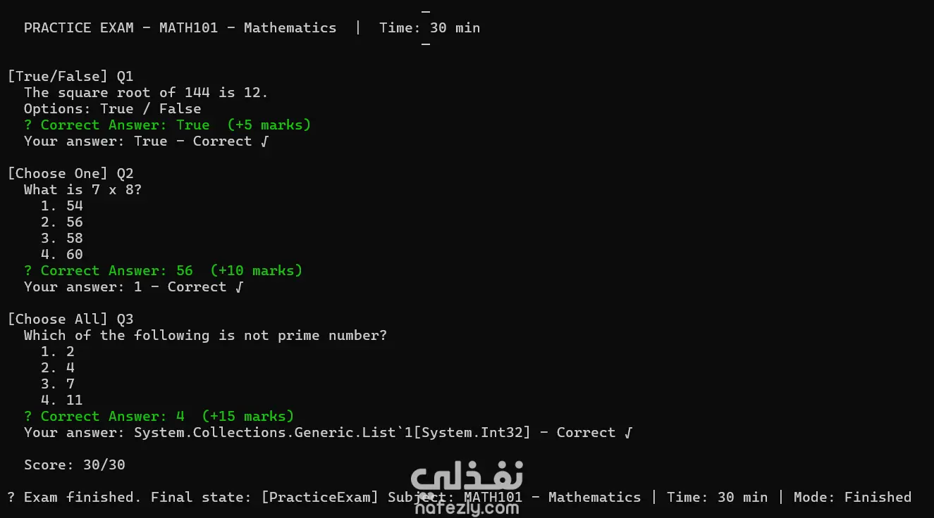 نظام امتحانات إلكتروني بسيط باستخدام C# مع قاعدة بيانات وتصحيح تلقائي