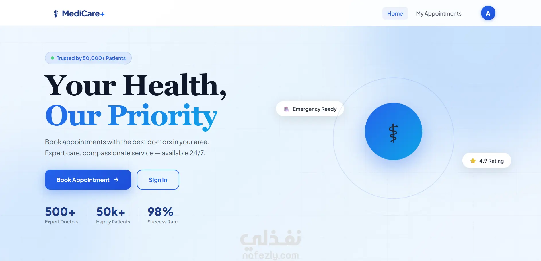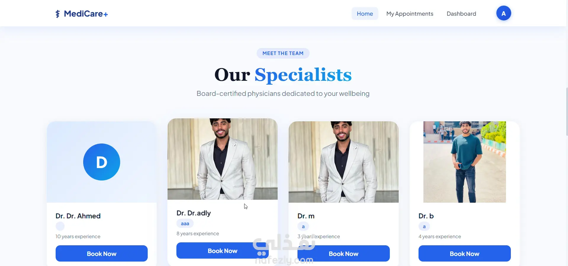 موقع متكامل لحجز مواعيد الأطباء تم بناؤه بالكامل من الصفر. المميزات: - تسجيل دخول وإنشاء حساب مع JWT Authentication - حجز وإلغاء المواعيد مع الأطباء - عرض الأقسام الطبية والأطباء المتخصصين - لوحة تحكم للأدمن لإدارة الأطباء والأقسام - نظام صلاحيات (User / Admin) - تصميم احترافي Responsive التقنيات المستخدمة: Frontend: Angular 17 - TypeScript Backend: Node.js - Express.js Database: MongoDB - Mongoose Auth: JWT - Bcrypt