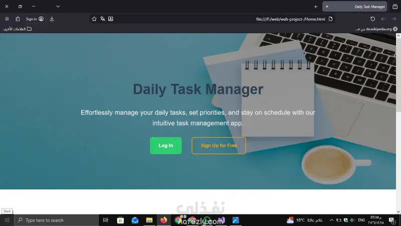 تطبيق ويب متكامل لإدارة المهام اليومية، يتيح للمستخدم تنظيم وقته بفاعلية من خلال واجهة مستخدم بسيطة وسريعة الاستجابة.